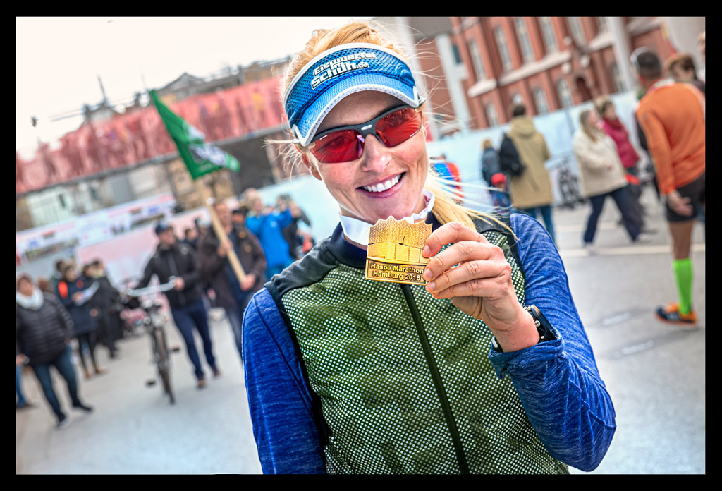 So einen harten Kampf hatte ich noch nie ausgestanden und nur Dank der Erfahrung, wie es sich bei Mitteldistanzen anfühlen kann, einen Halbmarathon als Abschluss zu laufen, funktionierte das Unterfangen Hamburg Marathon dann doch noch irgendwie. Nach 3:56h überschritt ich hellwach aber körperlich komplett am Ende die Ziellinie. Ich bekam überglücklich meine Medaille und konnte endlich einigermaßen atmen.