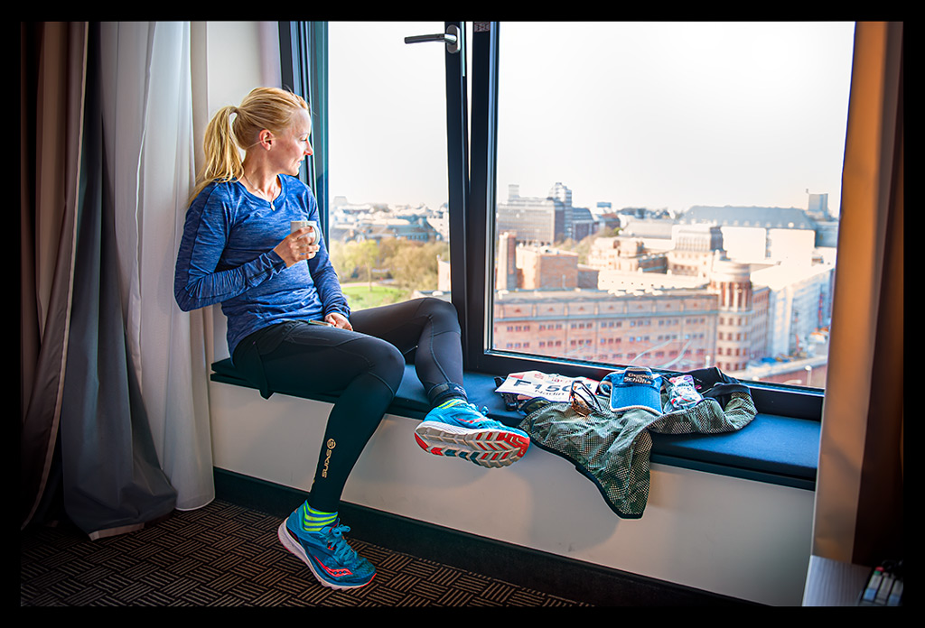 Am Samstag ging es für mich gen Norden, um noch rechtzeitig meine Startunterlagen für den Marathon abholen zu können. Ich war bester Stimmung als ich mit meinem Quersummen-Tick erfuhr, dass die Summe des Hotelzimmers und meiner Startnummer gleich waren. Zudem hatte ich einen großartigen Blick von meinem Zimmer im 12. Stock auf die Marathonstrecke, wo ‚Das Zehntel‘ in vollem Gange war. Aber auch die Messe war eine kleine Überraschung. Denn sie war doch größer, als ich vorher vermutet hatte. Es war sehr unterhaltsam, dass ich mich mit einigen Marken über Neuigkeiten austauschen konnte, über deren Produkte ich hier doch hin und wieder berichte. Vielen lieben Dank auch an dieser Stelle an das Mizuno Team, das den Start in Hamburg möglich machte.