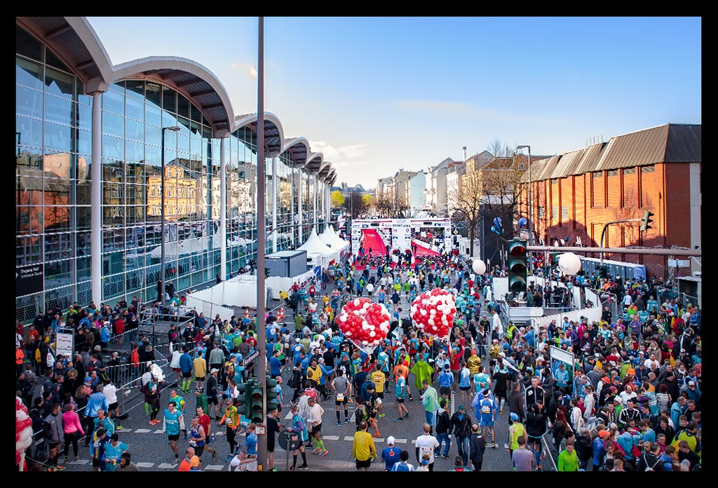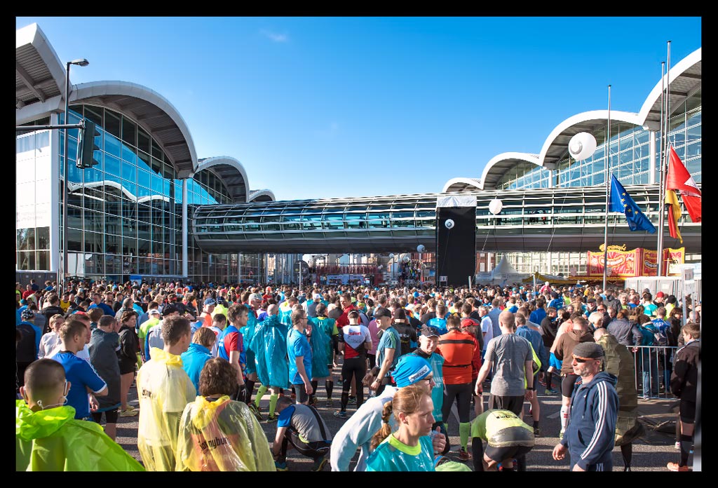Eine halbe Stunde vor dem Start lief ich Richtung Startblock E. Von dort aus sollte es an diesem Morgen losgehen. Während des Einlaufens spürte ich recht schnell, dass selbst tippelnde Schritte irgendwie eine zähe Nummer werden könnten. Aber oft genug relativiert sich die Atemnot nach einigen Kilometern, wenn mein Körper erst einmal richtig warm gelaufen und die Nervosität abgefallen ist. Ich habe mich sehr darüber gefreut, dass mich einige Leser meiner Seite ansprachen und wir noch Gelegenheit hatten, uns etwas auszutauschen. Alles war super entspannt. Kein Gedrängel, einfacher Zugang zu den Startblöcken, ausreichend Toiletten, alles super organisiert.