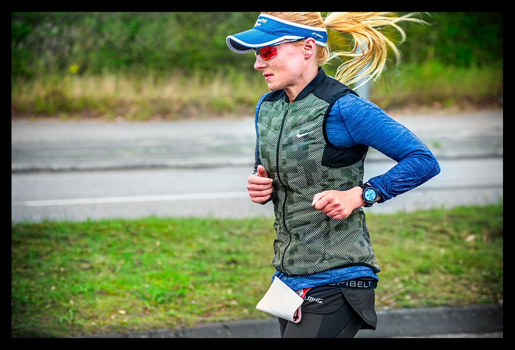 Mit dem Saucony Kinvara 7 war ich zusammen mit Currex Einlagen sehr bequem unterwegs. Die Skins Tight hielt ganz sicher meine Muskulatur etwas in Zaum und die Salming Tight gab es als Extra oben drauf. Das luftig leichte Lululemon Shirt war eine super leichte Basis und die Nike Flash Weste perfekt für diesen windigen Tag. Der Garmin Forerunner 630 lieferte wie immer über die gesamte Marathondistanz umfangreiche Laufdaten.