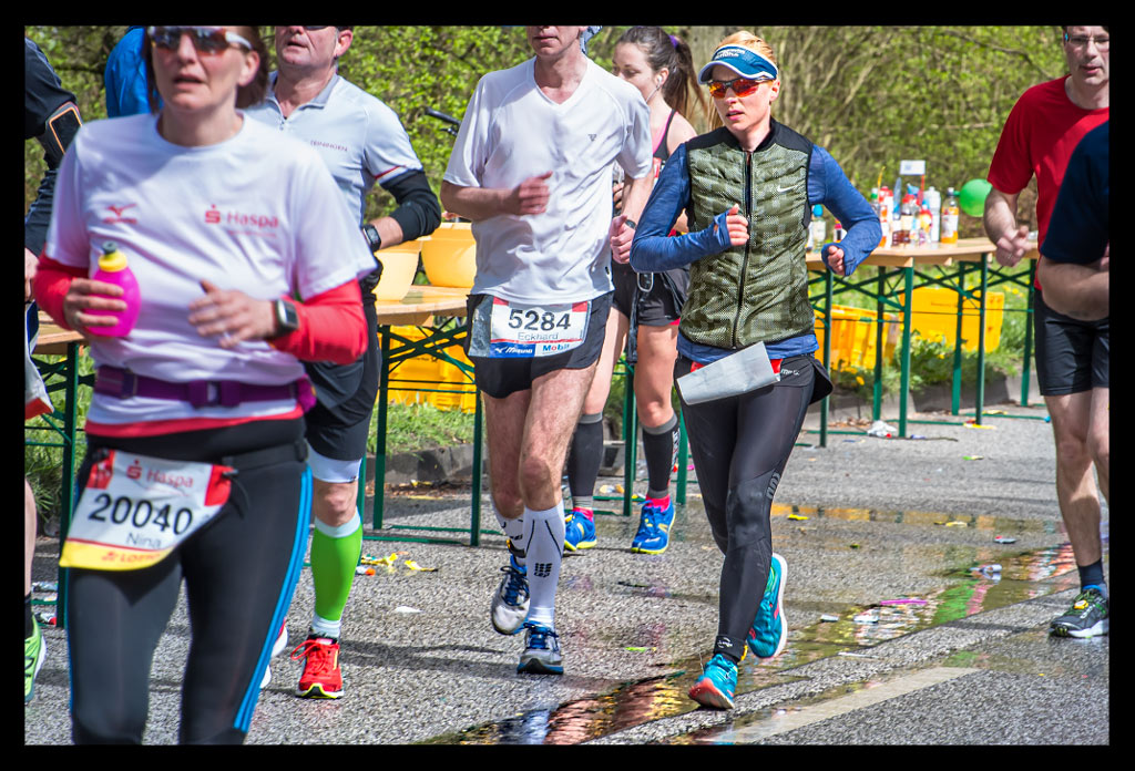 Ach du biast 2014 dort gelaufen, ja, stimmt. Das hatte ich total vergessen. Ich weiß gar nicht mehr genau, bis wohin es dieses Mal Gele gab. Auf jeden Fall war meines Erachtens ab km30 Schluss damit. Da kam mir der Red Bull und Cola Stand später doch sehr gelegen, denn meine Gele waren dann auch fast alle weg.