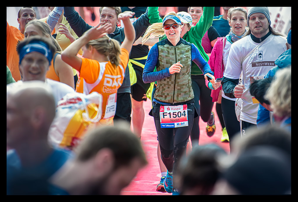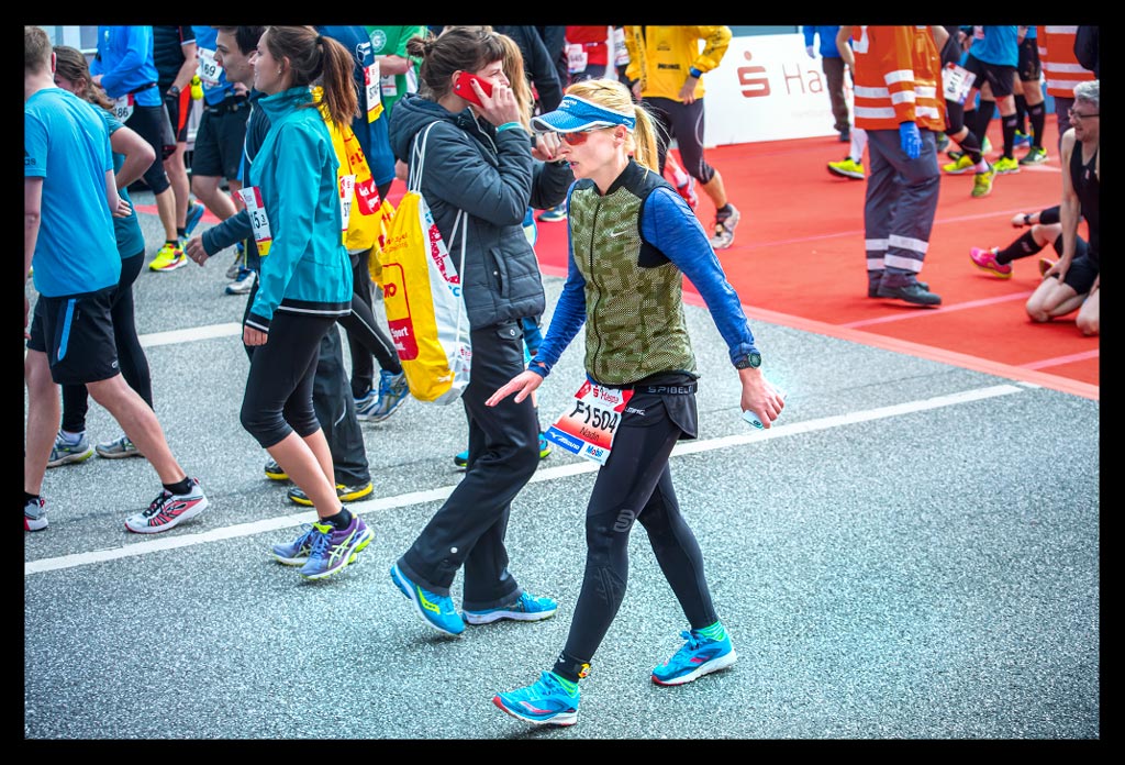 Mit Erreichen von Rotherbaum war schon fast alles geschafft. Einige Läufer bildeten sich ein, dass sie von da an in den Überholvorgang schalten müssten. Ich wurde zwei Mal von hinten so geschubst, dass ich froh war, nicht einfach zwei Kilometer vor dem Ziel vorwärts umzufallen. Als ich plötzlich das Messegelände erahnen konnte, war ich fassungslos.