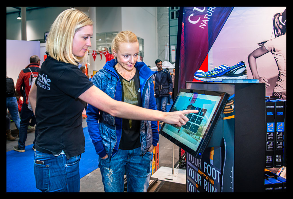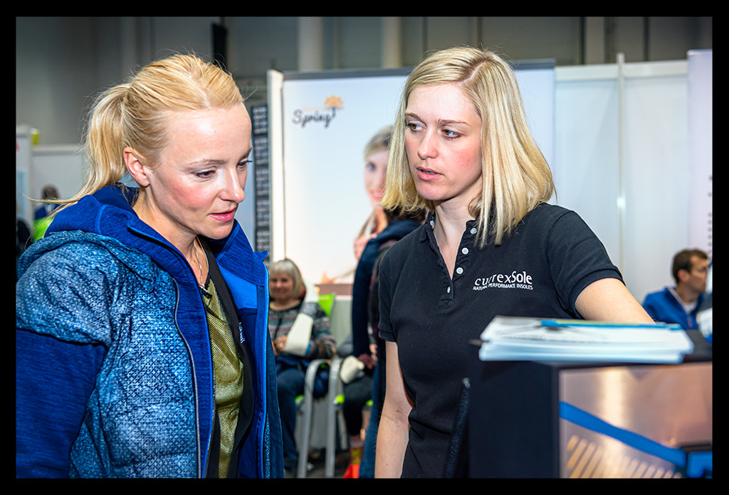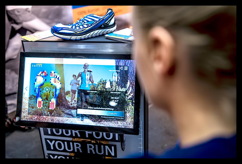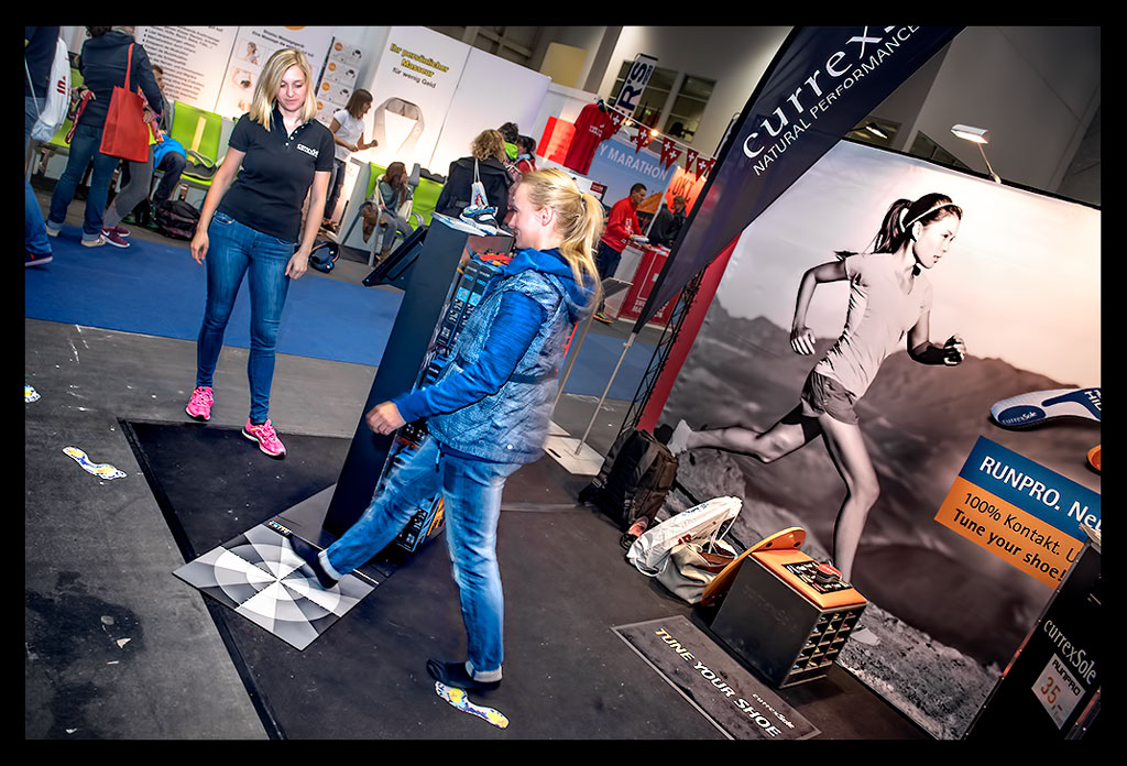 -und ich atmete Marathonluft, die unbändige Lust auf den Lauf machte. Mein letzter Marathon, den ich vor eineinhalb Jahren in Chicago gelaufen war, war schon viel zu lange her. Zum Abschluss ging es noch zur Currex Crew, bei der ich nach einem knappen Jahr noch einmal das Abrollen meiner Füße unter die Lupe nehmen ließ. Die Arbeit an der Gelenkstabilität meiner Beine und auch das Training meiner Füße scheint sich auszuzahlen. Ich sinke sehr wenig mit dem Fußgewölbe ein, rolle gut nach vorn und nicht mehr so stark über die Seite ab. Meine aktuelle Schuhwahl passt sehr gut zu den Empfehlungen des Currex Teams.
