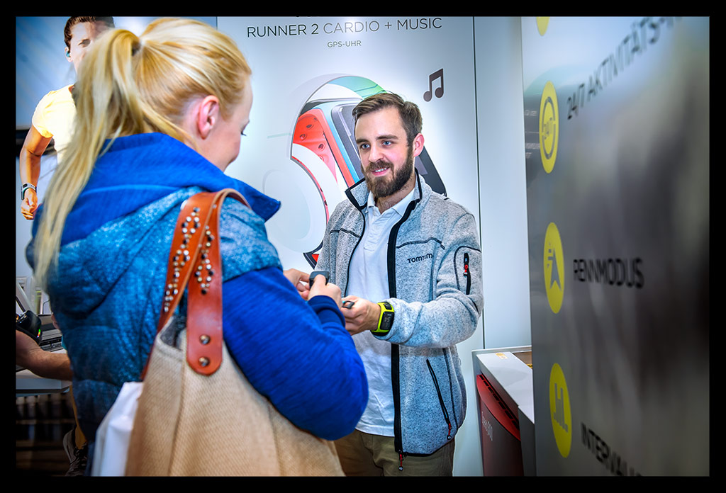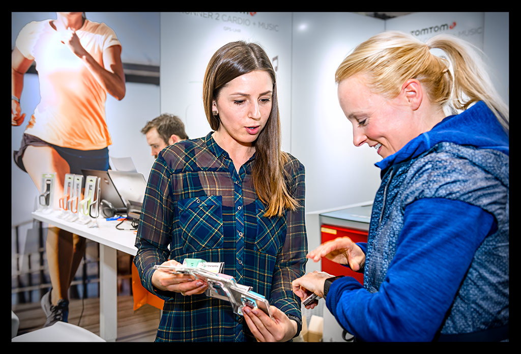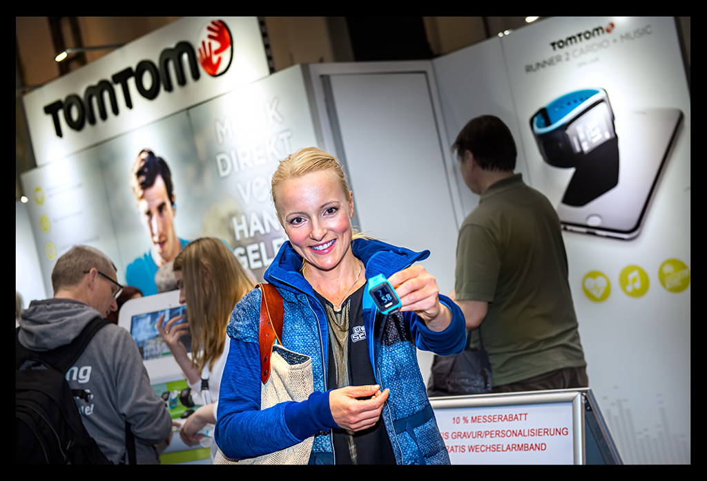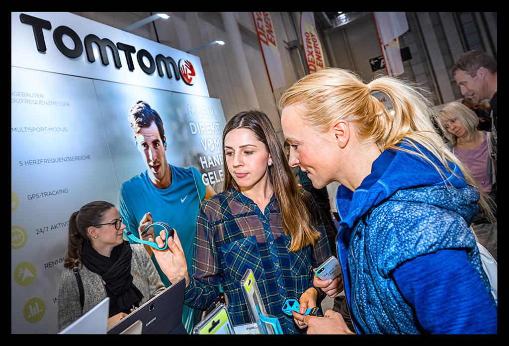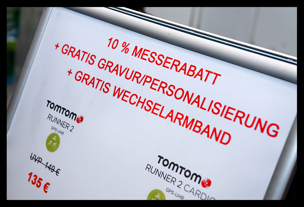 Anschließend fiel ich direkt über das Team von TomTom. Dort konnte ich mir meine Armbänder meiner GPS-Laufuhr Spark mit einem Laser gravieren lassen. Personalisieren war überhaupt das große Stichwort. Auch bei Mizuno und Asics konnte man Laufsachen individuell gestalten. Auf die Laufschuhe konnte beispielsweise der Name gestickt werden. Ein super Service, wie ich finde. Ansonsten stöberte ich an einigen Messeständen entlang, wurde vom Chicagoer Marathon überrascht, der ebenfalls einen kleinen Stand hatte; ließ mich fast überzeugen, dass der Hannover Marathon eine gute nächste Wahl wäre; schaute mir die Fenix mal genauer an und fragte mich, wann denn wohl der 930xt herauskommen würde.