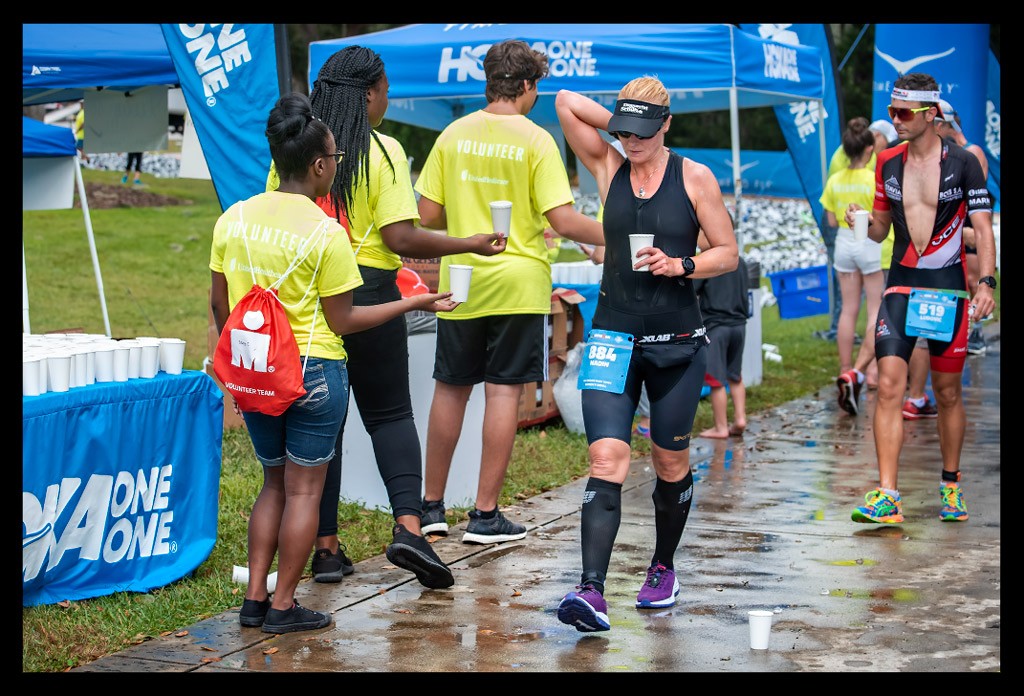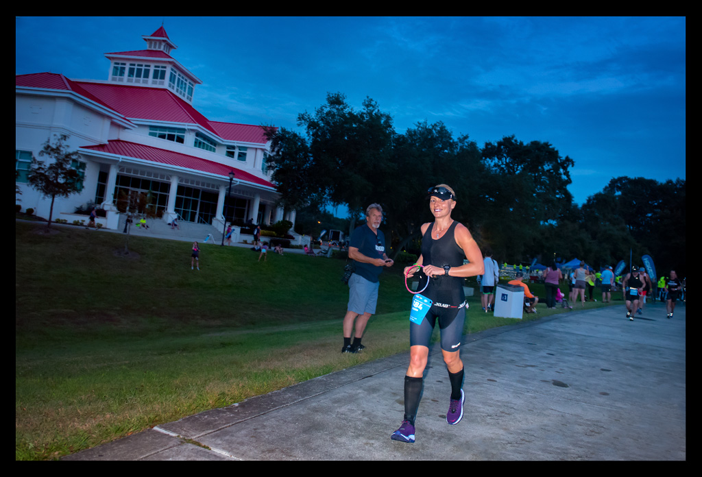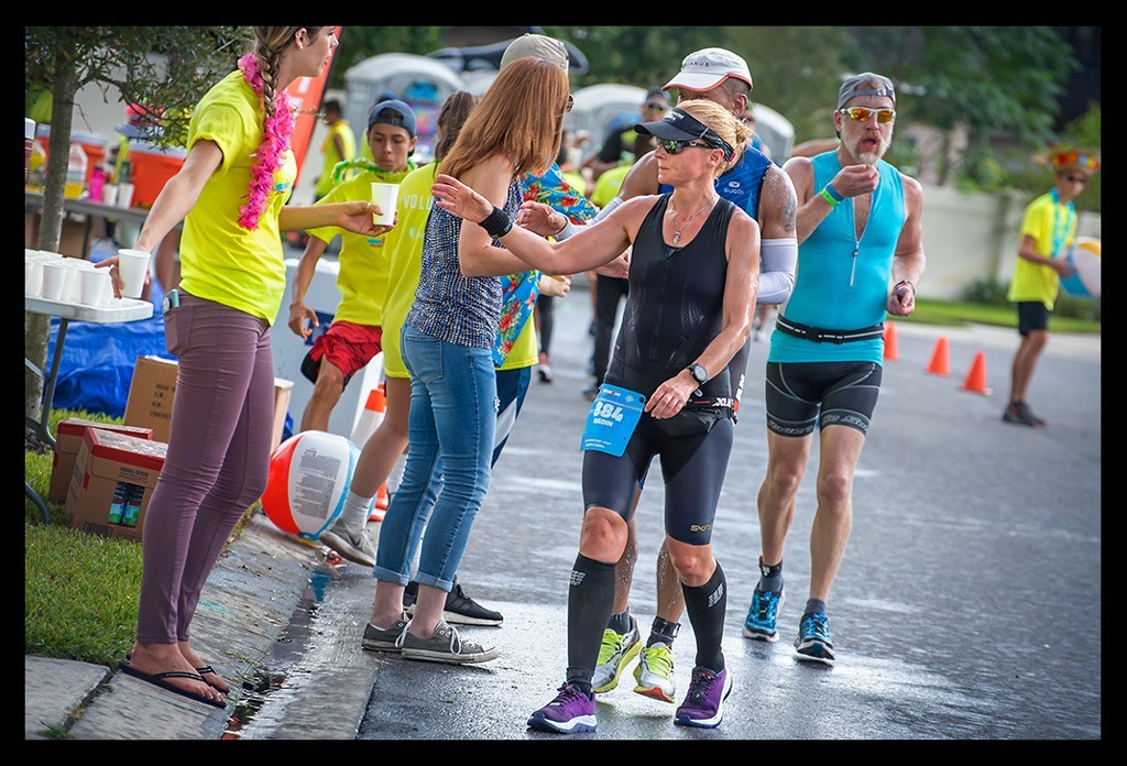Die Situation erinnerte mich ein wenig an meinen Hamburg Marathon vor einigen Jahren. Mit zu wenig Sauerstoff läuft man unweigerlich irgendwann gegen eine Wand, an der man nicht mehr vorbeikommt. Ein Marathon wird so zu einem Dauerintervall. Aufgrund der Schwüle in Florida konnte ich das alles erst nicht richtig einordnen. Mein Herzschlag war schon allein beim Gehen so hoch, wie sonst nur während eines zügigen Dauerlaufs. Das ist echt kein Spaß, dann in seinem Körper zu stecken! So richtig bewusst, was mit mir geschah, wurde es mir erst, als ich im Community Center mit meinen Wechselbeuteln nach dem Radabschnitt ankam und mich zum Laufen bereit machen sollte.