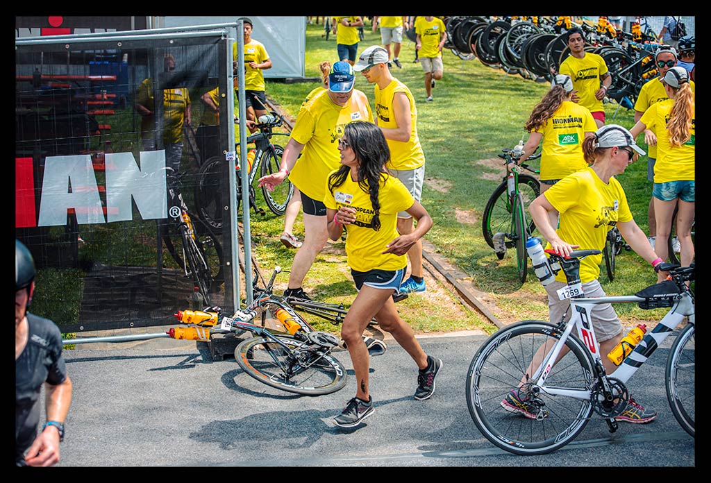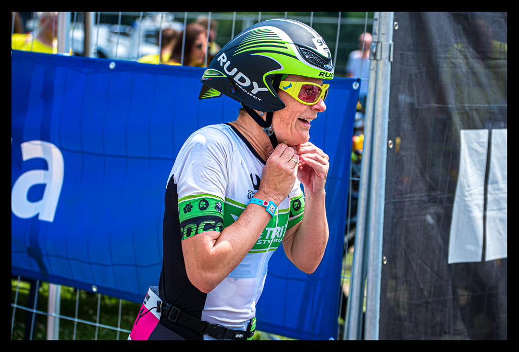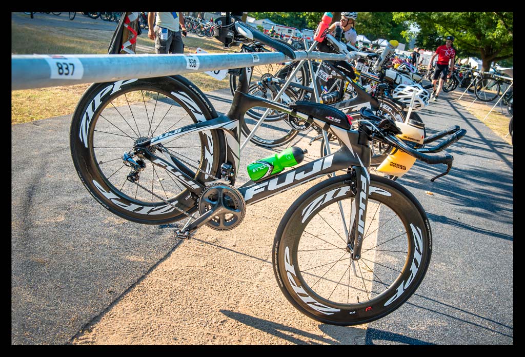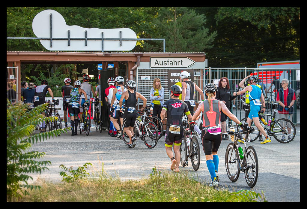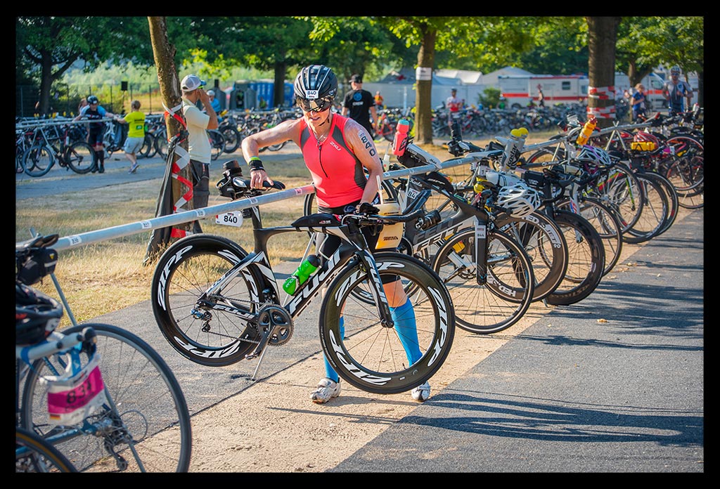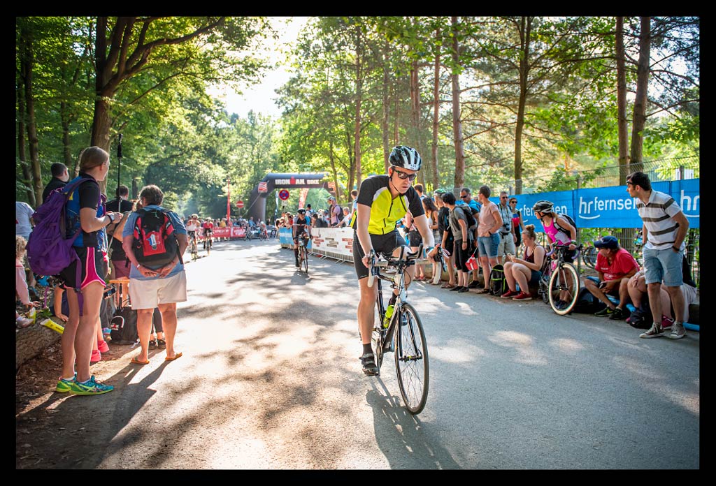 Nachdem ich mich beim Schwimmen selbst positiv überraschen konnte, obwohl ich mir gewünscht hätte, über’s Wasser laufen zu können und es mit einer für meine Verhältnisse super Schwimmzeit ja auch fast tat, sollte der anspruchsvollste Abschnitt dieses Ironmans mit der Radstrecke folgen. Zum Glück wusste ich davon noch nichts, als ich aus dem Wechselzelt zu meinem Fuji lief. Direkt in die zweite Reihe gestürmt, bis zum dritten Baum gelaufen, dann den kurzen Abschnitt, an dem keine Radständer standen hinter mir gelassen und etwas irritiert am ersten Baum danach geschaut, wo denn nun endlich mein Fuji hängt.