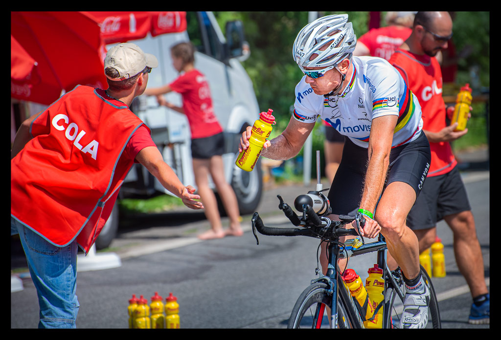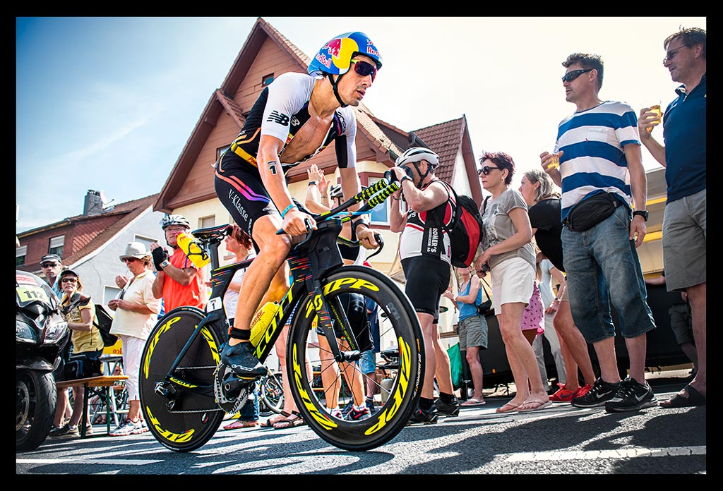 Wieder einige Fahrzeuge. Wenige Augenblicke später folgte Sebastian Kienle. Ob es das dann wohl war? Wo waren all die anderen? Hatten die mich alle unbemerkt überholt? Oder waren sie noch hinter mir? Immer wieder sah und hörte ich den Heli vor mir. Ich versuchte meine Motivation damit etwas aufzutanken. Es sollte ja noch einmal richtig anstrengend werden. So recht konnte ich es nicht glauben, dass sie nun gleich in die Laufschuhe durften, während ich noch einmal das Vergnügen mit der Strecke haben sollte.