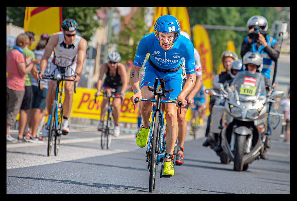 Neben mir brüllte plötzlich ein Athlet, dass es für ihn unfassbar wäre, dass er sich ein unmöglich teures Rad gekauft hat, nur um mit 13km/h eine kleine Rampe hoch zu kriechen. Ich wusste genau wovon er spricht! Vermutlich werde ich meinem Fuji nie gerecht. Aber das Fuji hat sich damit abgefunden, dass ich es nie ausfahren werde… Wobei! Die Abfahrten nahm ich endlich mal wie jemand, der wirklich fahren kann und ließ auch so manchen Mann hinter mir. Aeroposition und strampeln, was die Beine und das Fuji hergeben konnten.