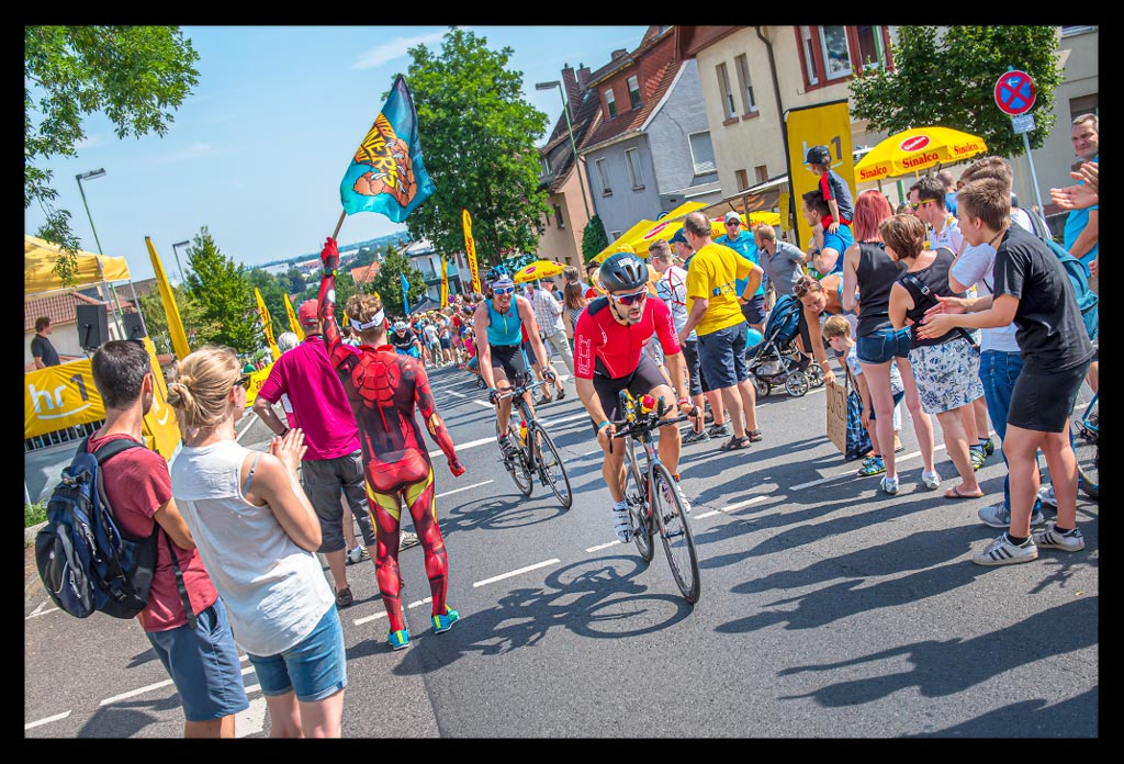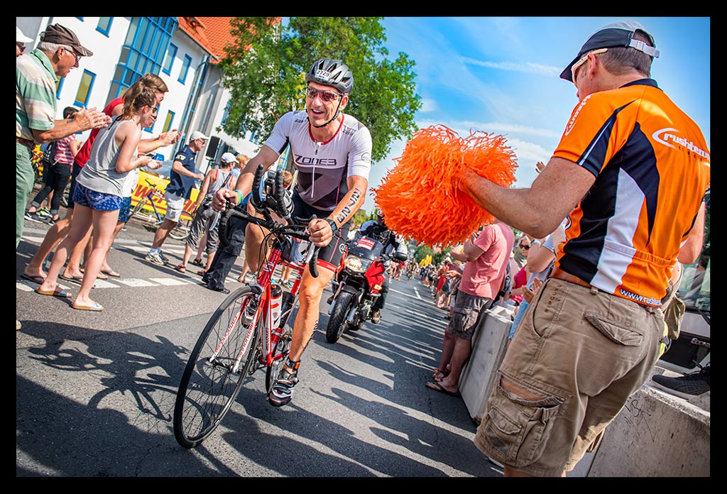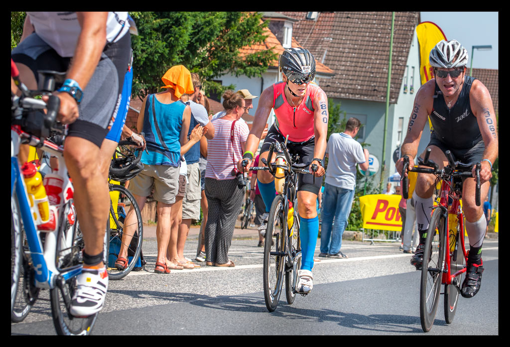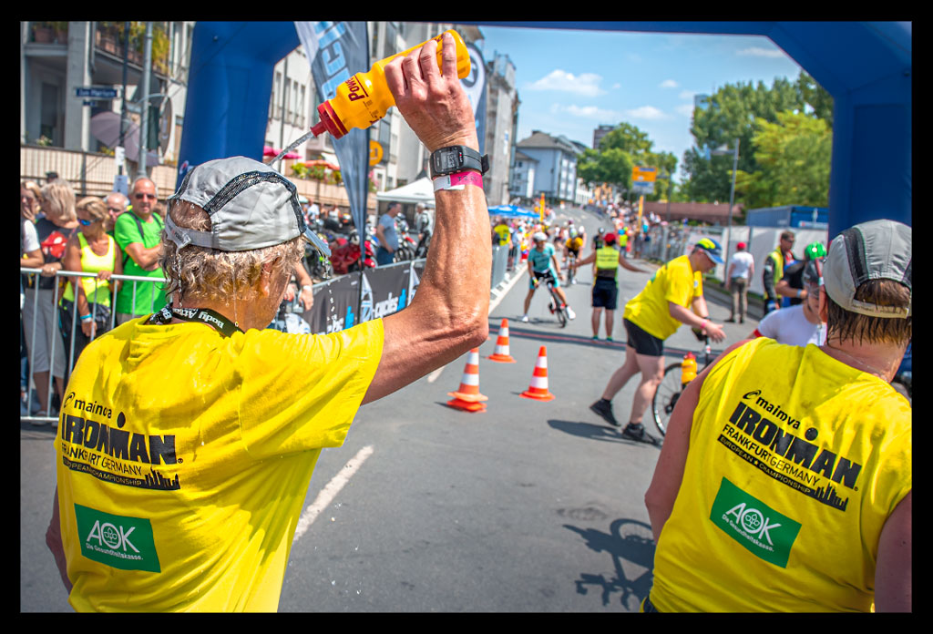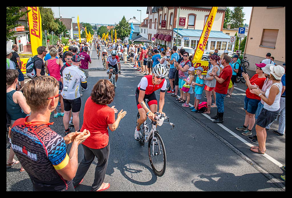 Der Ironman Frankfurt punktete auf der Radstrecke insbesondere mit seinem welligen Profil, das sich durch idyllische Orte schlängelte. Diese zeigten sich zu weilen mit ihren Hot Spots als wirklich unterhaltsame Streckenabschnitte. Aber auch die wieder sehr fürsorglichen Helfer an den zahlreichen Verpflegungsstationen sorgten für einen kurzweiligen zweiten Teil dieser Ironman European Championship. Für mich war es im Kopf ein hartes Stück Arbeit, weil ich irgendwie keine Ruhe finden konnte, unkonzentriert und zappelig auf meinem Fuji hin und her rutschte und mir einfach die Kraft an diesem heißen Sommertag fehlte.