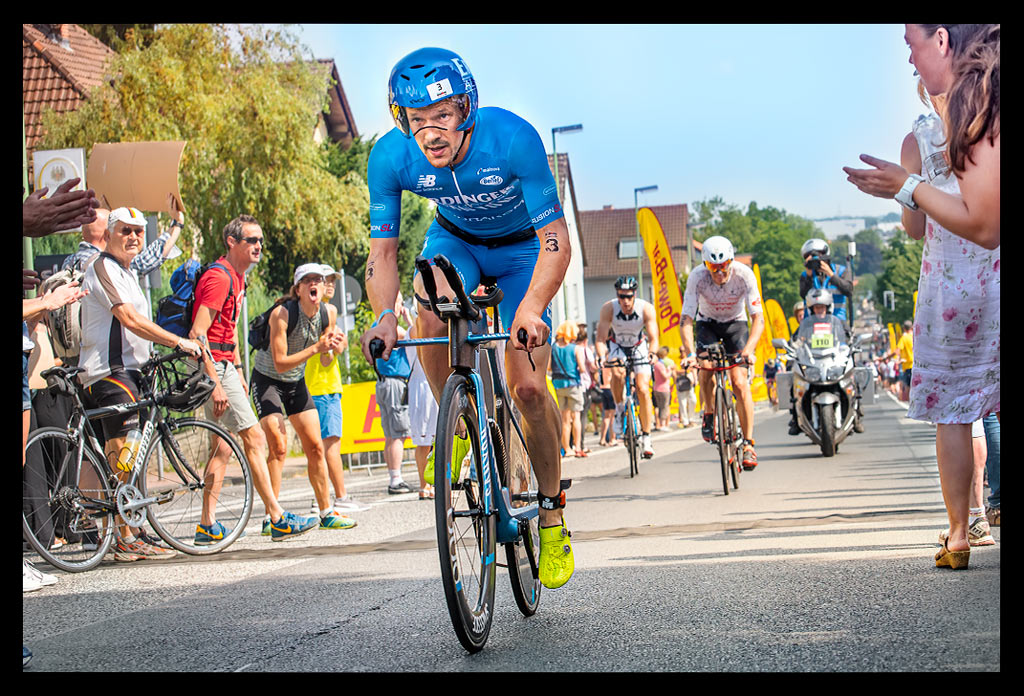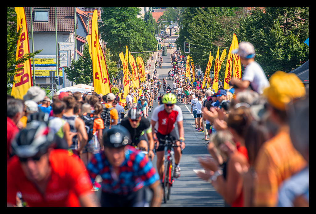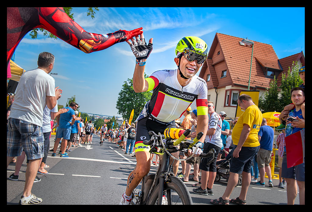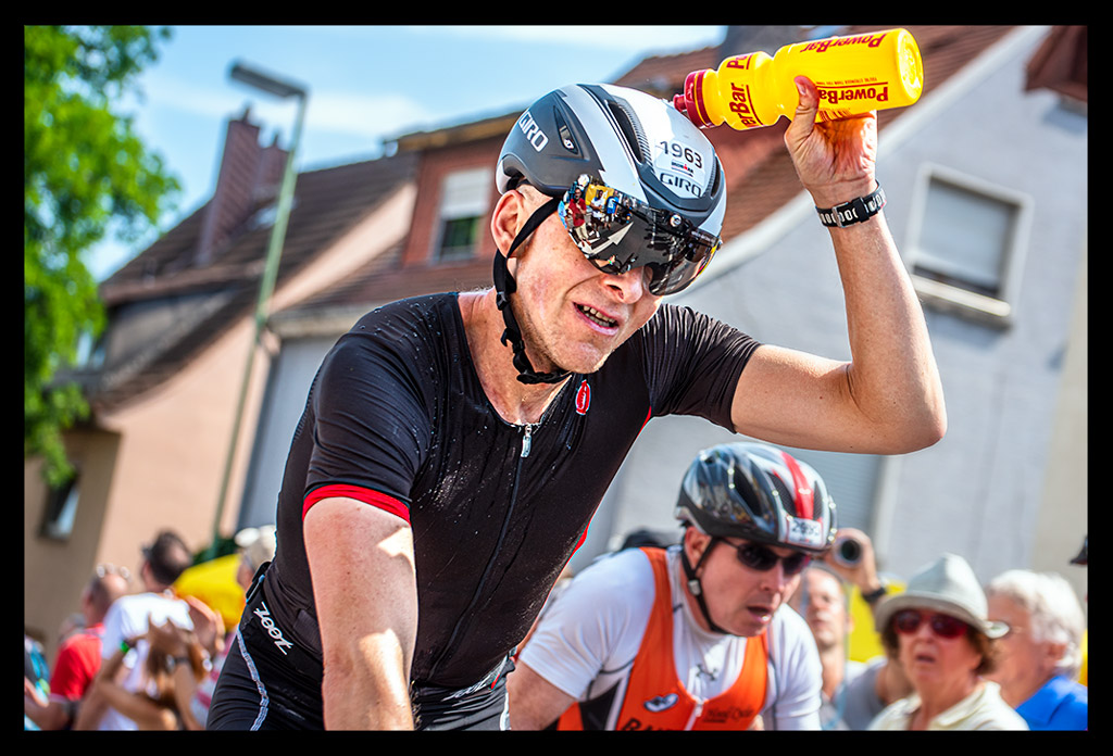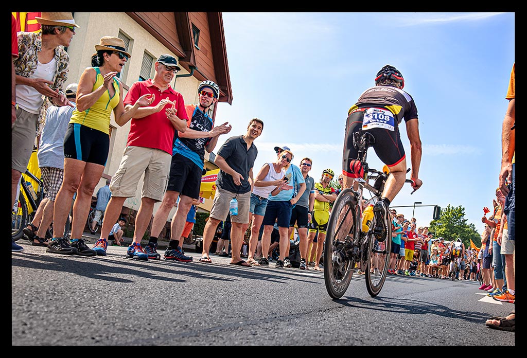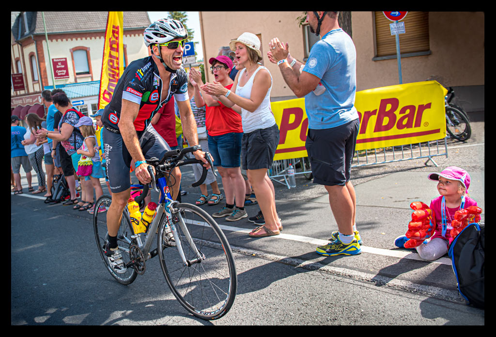 Der Ironman Frankfurt punktete auf der Radstrecke insbesondere mit seinem welligen Profil, das sich durch idyllische Orte schlängelte. Diese zeigten sich zu weilen mit ihren Hot Spots als wirklich unterhaltsame Streckenabschnitte. Aber auch die wieder sehr fürsorglichen Helfer an den zahlreichen Verpflegungsstationen sorgten für einen kurzweiligen zweiten Teil dieser Ironman European Championship. Für mich war es im Kopf ein hartes Stück Arbeit, weil ich irgendwie keine Ruhe finden konnte, unkonzentriert und zappelig auf meinem Fuji hin und her rutschte und mir einfach die Kraft an diesem heißen Sommertag fehlte.