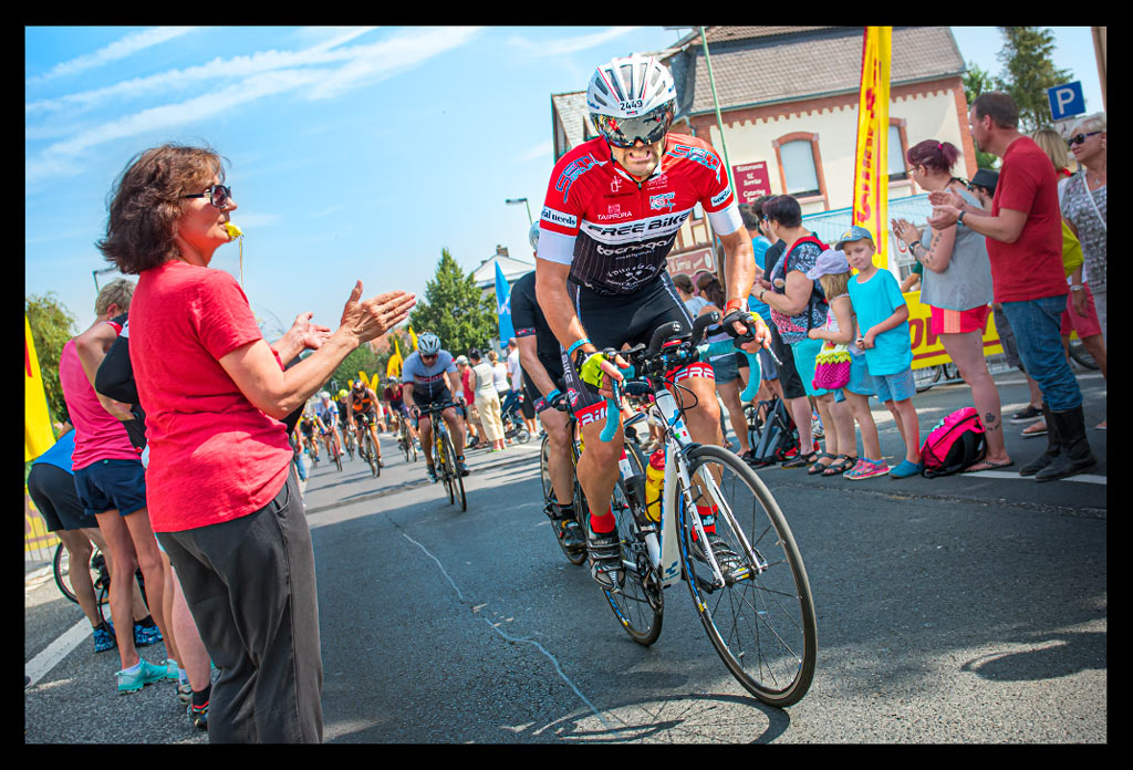 Einige Stellen habe ich erkannt und weiß, was dort zu bewältigen ist. Das Kopfsteinpflaster in Hochstadt kenne ich natürlich auch, ist ja nur ca. 15 km von uns entfernt. Bin also auch schon drüber gerattert. Am Berg in Bad-Vilbel stand ich letztes Jahr und habe die Athleten angefeuert. War damals ungeheuer beeindruckt, mit welcher Geschwindigkeit die da hoch düsen. Leider hatte ich dieses Jahr keine Zeit, sonst hätte ich dich vielleicht gesehen und hätte dir garantiert zugejubelt – schade!