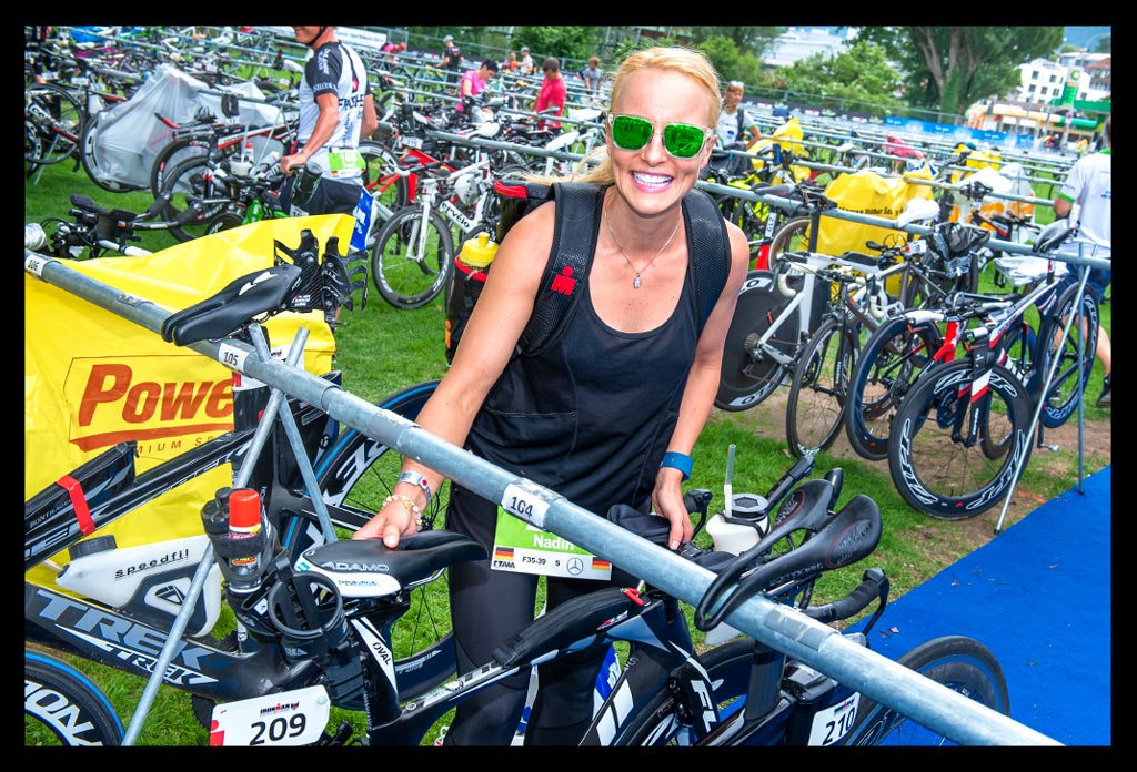 Am Bike Check-In war einiges los und Favoritin Daniela Ryf lief forschen Schrittes geradewegs an mir vorbei als ich zur Abgabe einbiegen wollte. Ich warf noch einen kurzen Kontrollblick auf das Schildchen der freundlichen Helfer und ging dabei im Kopf noch einmal alles wie ein Blitz durch. Ich schien alles bei mir zu haben. Die Helfer waren alle so unglaublich freundlich. Jeder wünschte mir viel Erfolg und ich war mir nicht sicher, wer sich denn nun eigentlich mehr auf den Start freute. Sie oder ich?