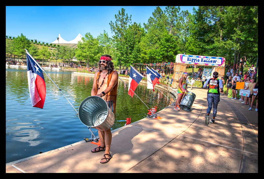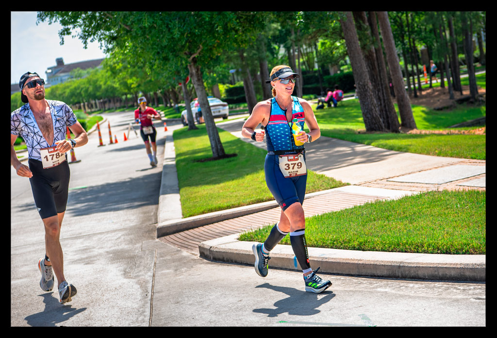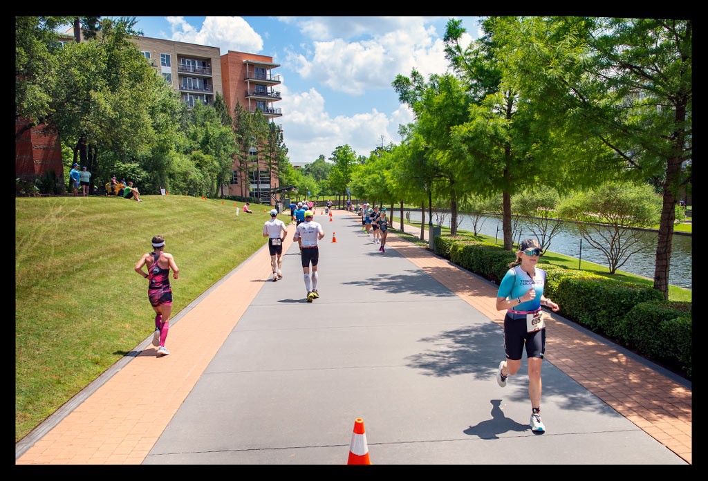 Eine Besonderheit der Ironman Texas Laufstrecke sind die schönen Übergänge zwischen sonnigen und schattigen Abschnitten, für die vermutlich nicht nur ich in der Sommerhitze Texas’ dankbar war. Während die Waterway-Passagen wenig Schatten bieten, führen weite Teile der Strecke durch waldreiche Wohngebiete, die eine willkommene Pause von der unermüdlich brennenden Sonne gewähren.