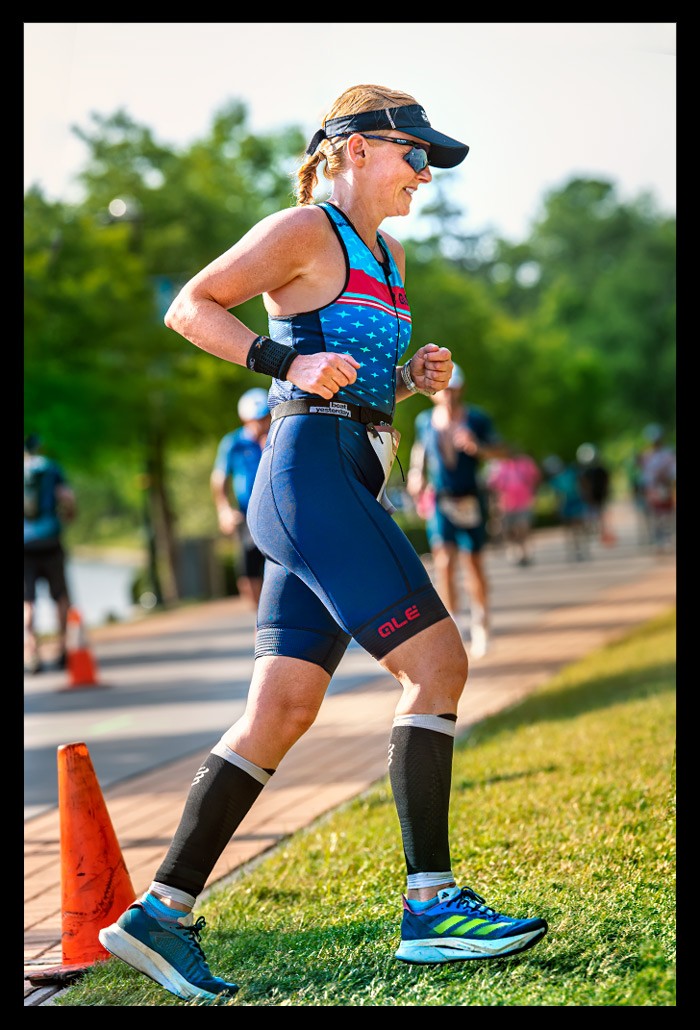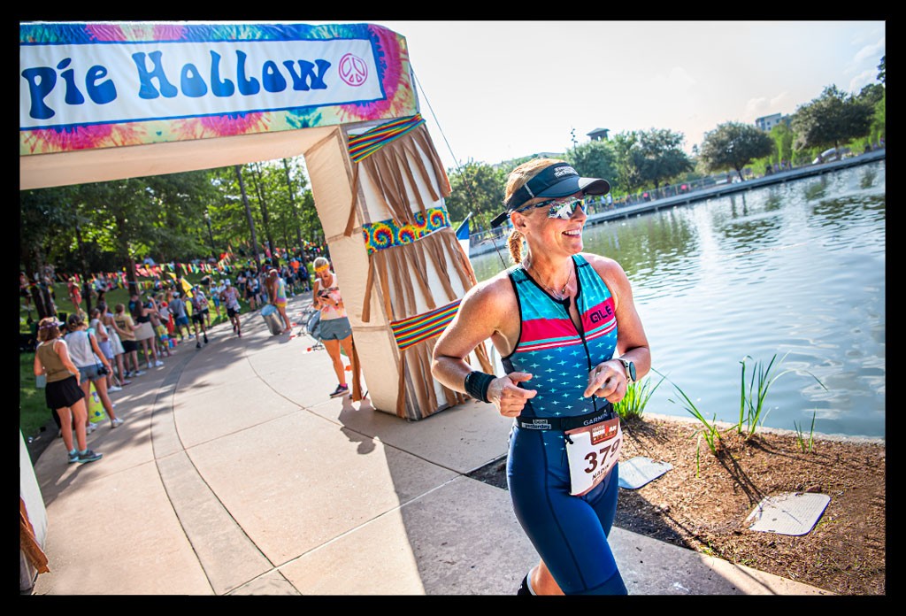 Die Atmosphäre entlang der Ironman Texas Laufstrecke war eine gelungene Kombination aus amerikanischem Flair und Unmengen von Athleten und Zuschauern. Der 42,2 Kilometer lange Kurs über drei Runden um Lake Woodlands bildete eine passende Kulisse für diesen abschließenden Teil des Rennens. Während wir Athleten zwischen den Wasserstraßen und dem spektakulären Hippie Hollow liefen, boten die wechselnden Schatten- und Sonnenabschnitte unterschiedliche Bedingungen für den abschließenden Marathon.