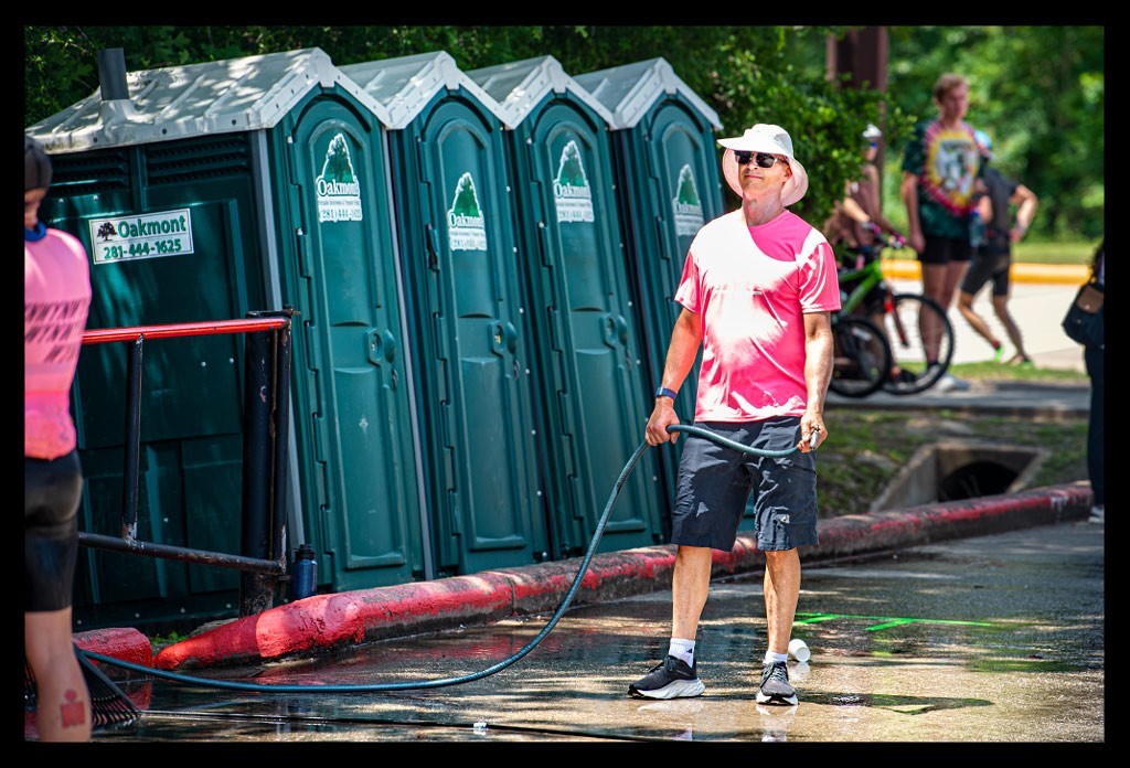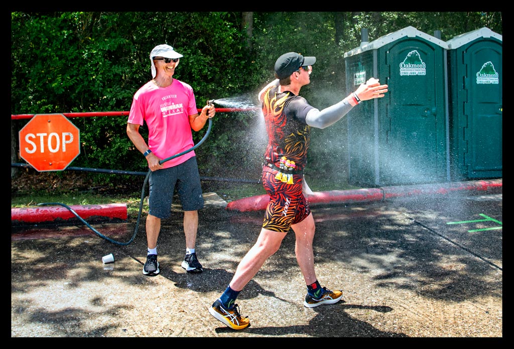 Ich griff noch mein Visor mit einigen Gelen und die Helferin setzte mir die Rudy Project auf. Ich hatte extra nach der Astral Sphere gegriffen, als ich meine Sachen am Vortag zusammenstellte, weil es die leichteste Sportsonnenbrille in meinem Schrank ist. Damit ging es von dem heißen Zelt in die schwüle Mittagshitze von Texas.