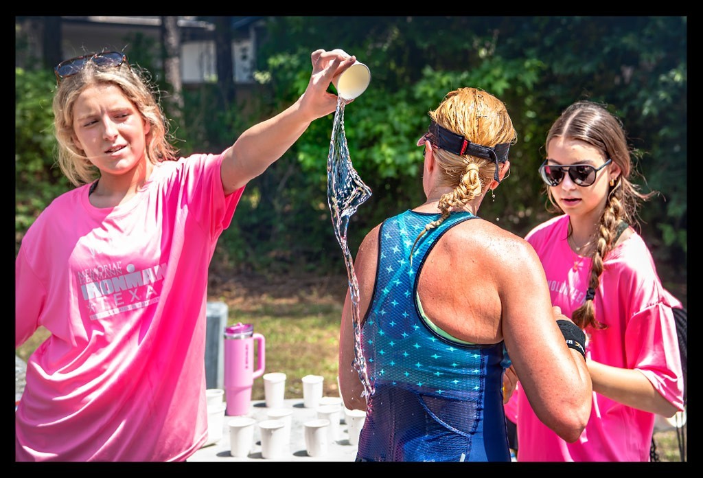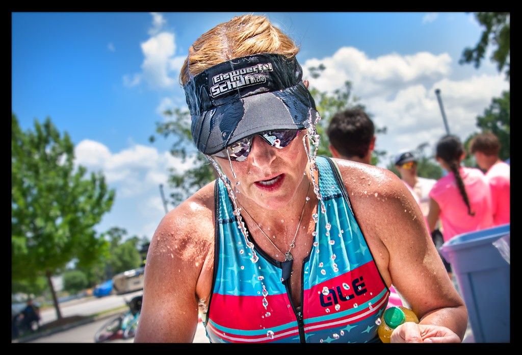 Während mein Kopf immer noch von der Radstrecke und dem stickigem Wechselzelt kochte, war ich dankbar über jede Erfrischung.