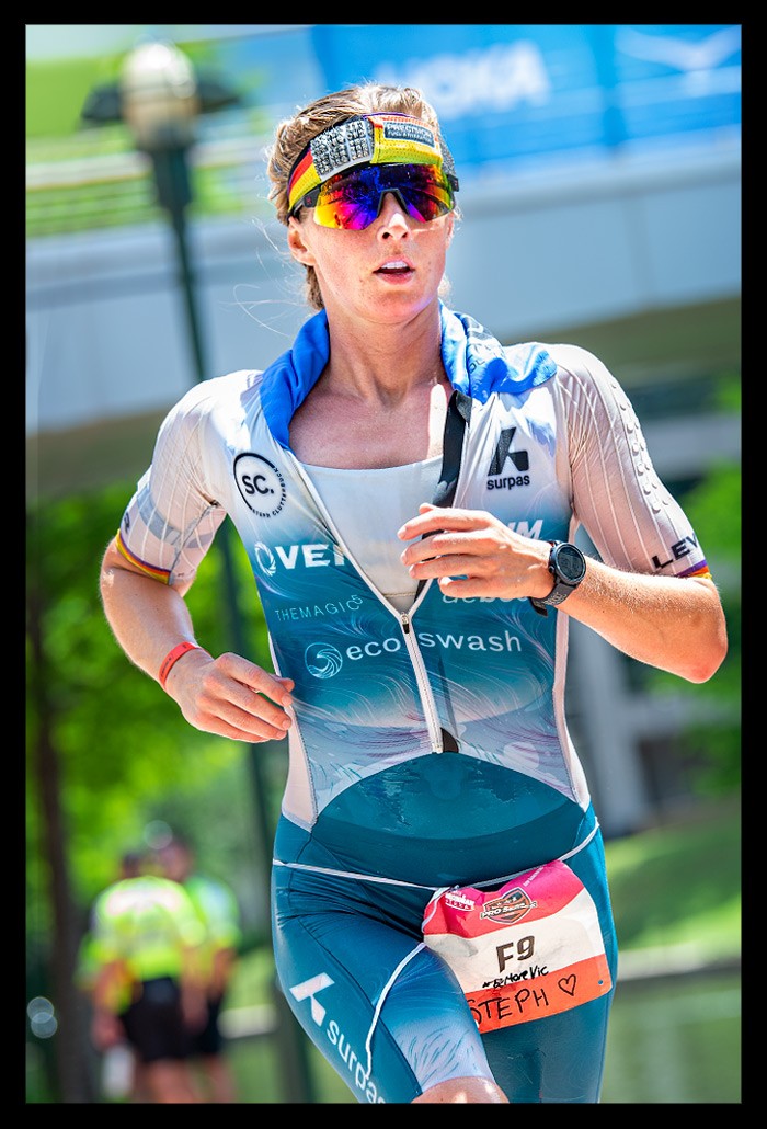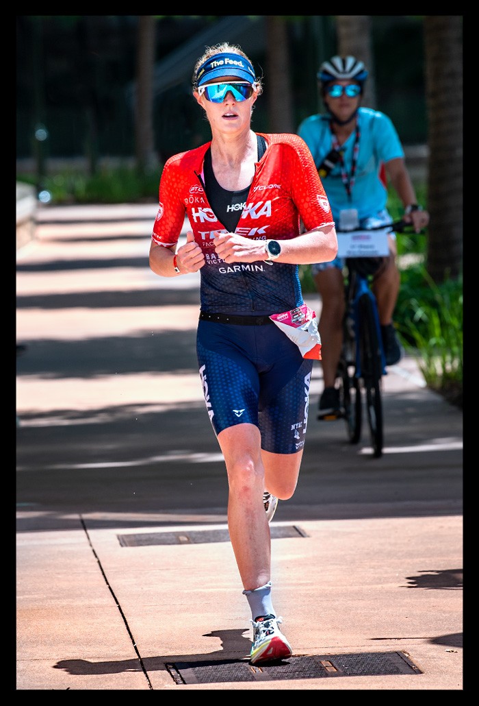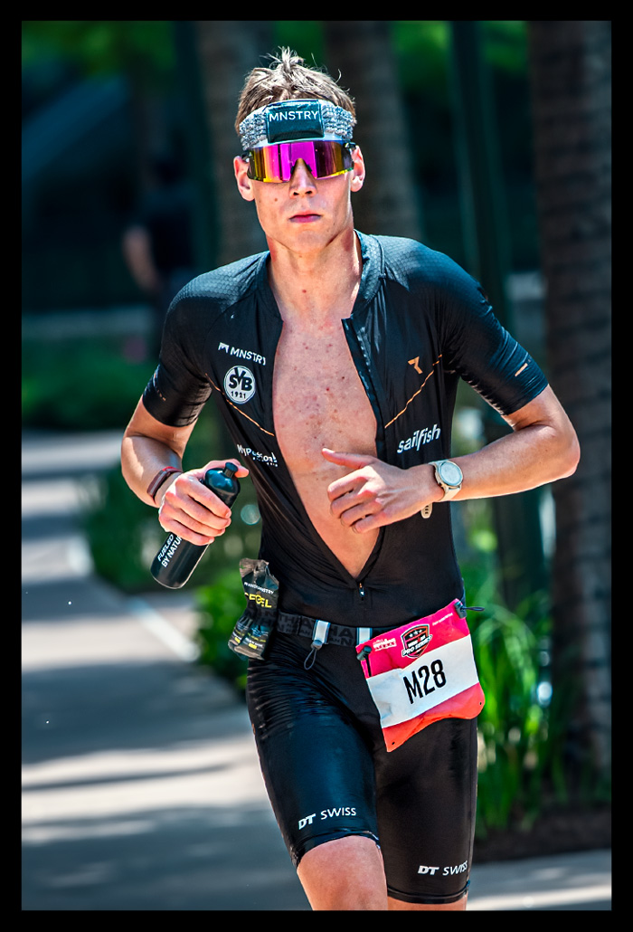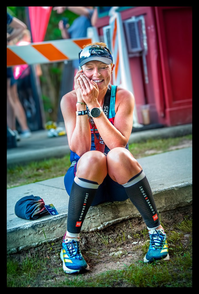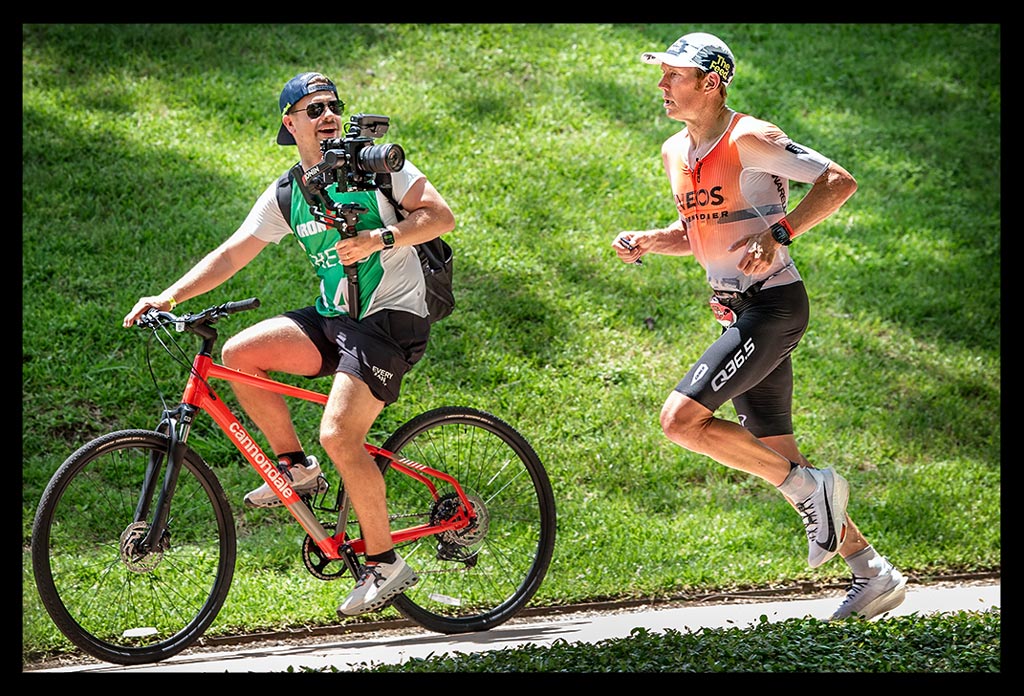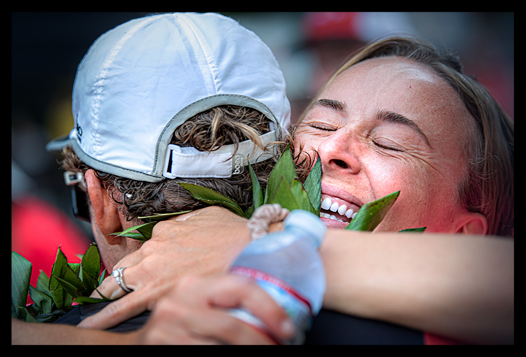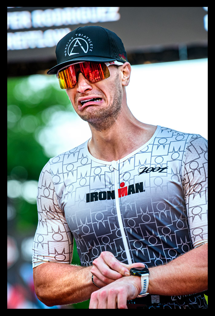 Erst am Abend erfuhr ich mehr über die spektakulären Zeiten der Profis. Kristian Blumenfelt setzte sich bei den Männern durch, während bei den Frauen Kat Matthews triumphierte, die Taylor Knibb noch auf der Laufstrecke überholte. Zuvor waren Kristian und Taylor mit einer Weltbestzeit für den Radabschnitt auf die Laufstrecke gewechselt. Und während ich über die Laufstrecke schlich, rasten sie ins Finish. Wenn sie an mir vorbeiliefen, hätte man meinen können, dass ich in der Weltgeschichte einfach nur herumstehe.