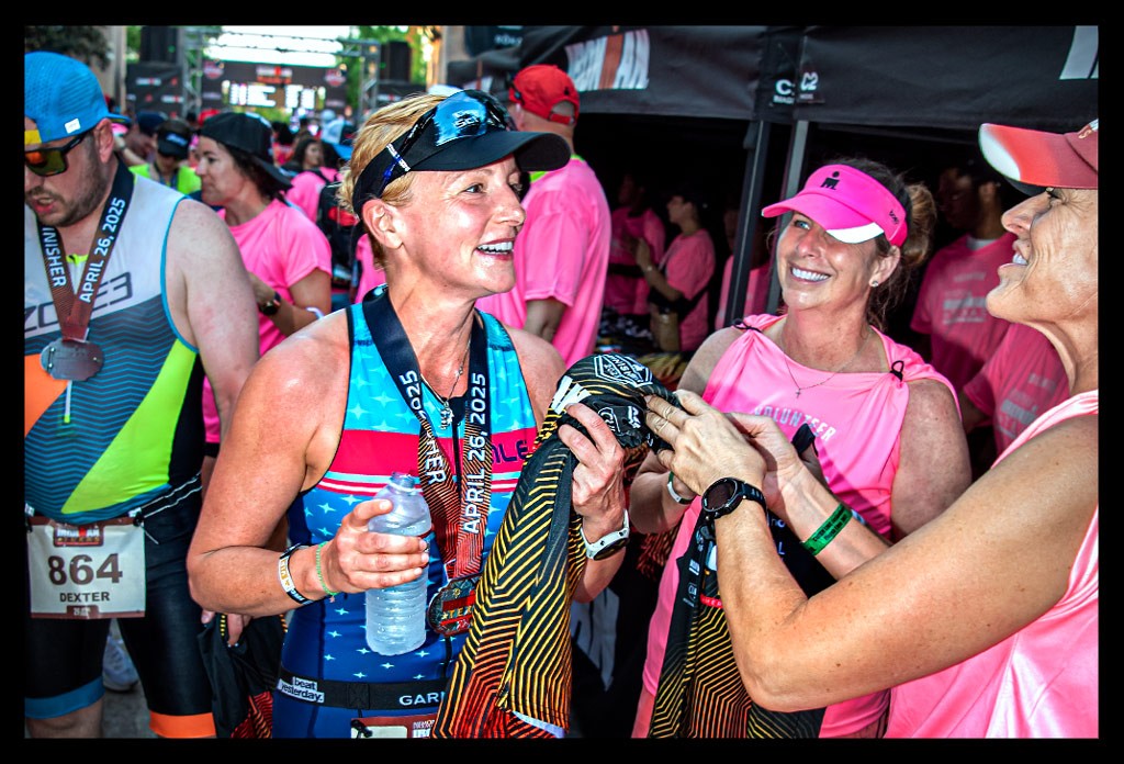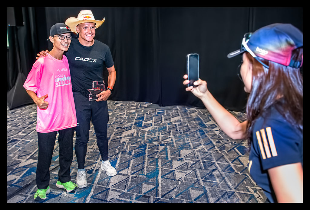 Die Atmosphäre war geprägt von müden aber glücklichen Athleten und der typisch texanischen Gastfreundschaft. Unter ihnen verteilten sich die Profis, die wie wir Altersklassen-Athleten das Finisher Buffet und die Moderation genossen. Es ist immer wieder beeindruckend zu sehen, wie zugänglich und bodenständig die Profis sind – keine Berührungsängste, sondern immer im Austausch mit vielen Age Group Athleten.