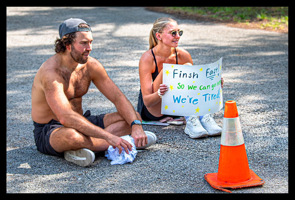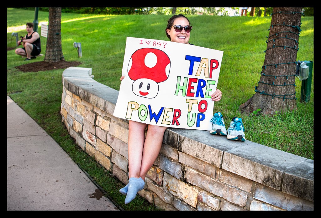 Allein diese An- und Auszieherei nervte unfassbar. Die nach und nach stärker werdenden Schmerzen waren mentaler Terror. Um mich nicht von diesen Gedanken auffressen zu lassen, setzte ich mir Mini-Ziele. Aus irgendeinem verrückten Grund hatte ich mir in der ersten Runde markante Helfergesichter oder Helferaktionen gemerkt, denen ich entgegen fieberte. So wurden die drei Runden durch The Woodlands eine Suche nach genau diesen Gesichtern.
