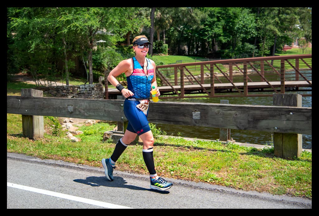 Denn zunächst ließ ich das stickige Wechselzelt hinter mir. Die selbst schwitzende Helferin im Zelt gab ihr Bestes, um mich abzukühlen und gleichzeitig in die meine Laufsachen zu finden. Den Alé Tri Suit ließ ich aber trotz eines anderen Plans an. Der saß so prima auf dem Rad, dass ich mir noch vorstellen konnte, dass es bei der Hitze besser wäre in meinem lockeren Anzug. Meine Lieblingslaufschuhe, die Adidas Boston, die mich schon seit den 2010er Jahren bei zahlreichen Wettkämpfen begleiten, warteten wieder auf mich. Ein vertrautes Gefühl, das ich bei jedem Ironman brauche.