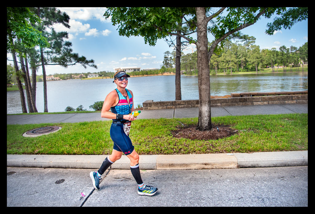 Eine an sich sehr schnelle Strecke wartete auf uns. Die begeisterten Zuschauer befanden sich auf allen Streckenabschnitten der Ironman Texas Laufstrecke und schufen eine großartige Atmosphäre, die mir half, einen Fuß vor den anderen zu setzen. Nur dort draußen am Lake Woodlands außerhalb der Innenstadt war es deutlich ruhiger, geradezu idyllisch und vor allem auch etwas angenehmer, weil es viel Schatten gab. Aber Runde für Runde dort draußen allein unterwegs zu sein, zehrte auch.