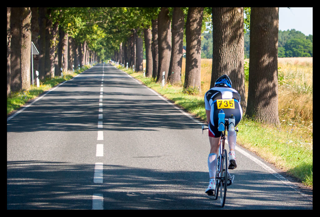 Die Strecke wird gähnend leer. Die Teilnehmer der olympischen Distanz, wie Sebastian und die Flitzpiepen, sind auch schon fast alle im Ziel. Die Zuschauer sind verschwunden. Eine Dame muss sich wohl verirrt haben, als sie mir im Nirgendwo zujubelte. Wir schwatzen kurz, das baut mich ein wenig auf.