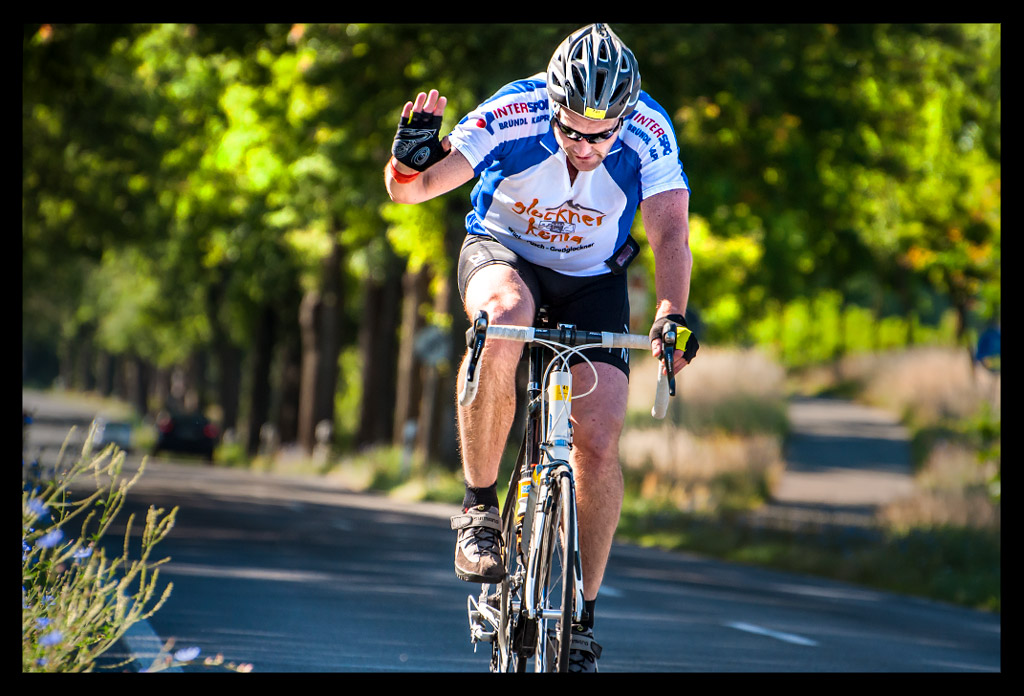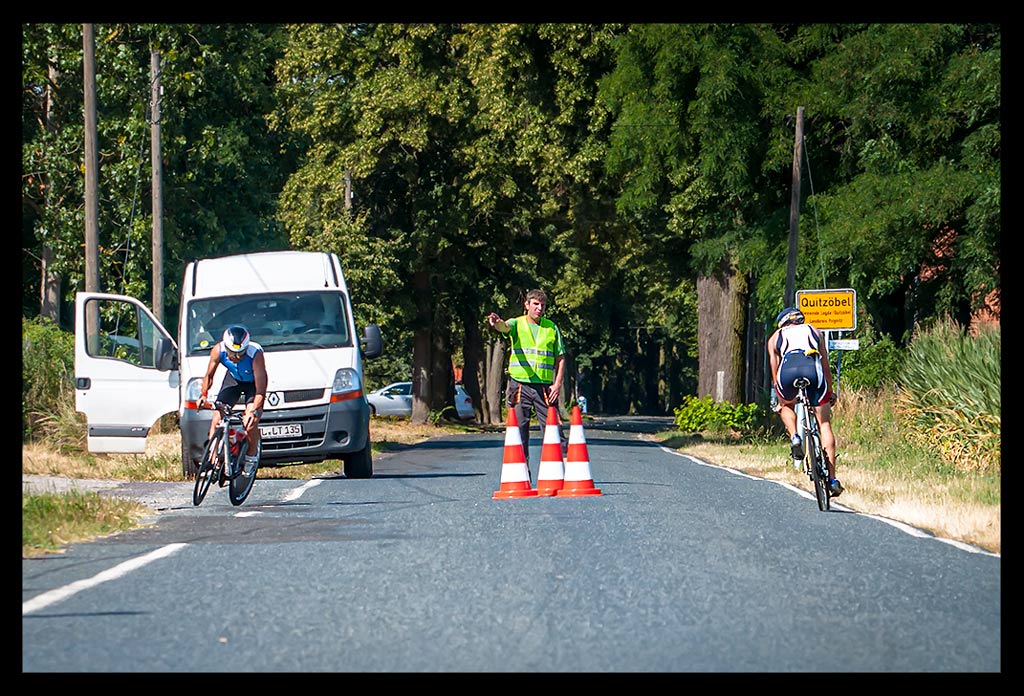 Während der zweiten und dritten Runde sorgt mein Fotograf gleichsam für Erheiterung wie Verwunderung bei den Kampfrichtern. Denn in all der Hektik hat er sein eigenes Rad und den Rucksack in die Felder katapultiert (es stellt sich nicht selten die Frage, wer von uns mehr Sport an solch einem Wettkampftag getrieben hat), während er selbst auf dem gegenüberliegenden Seitenstreifen lag.