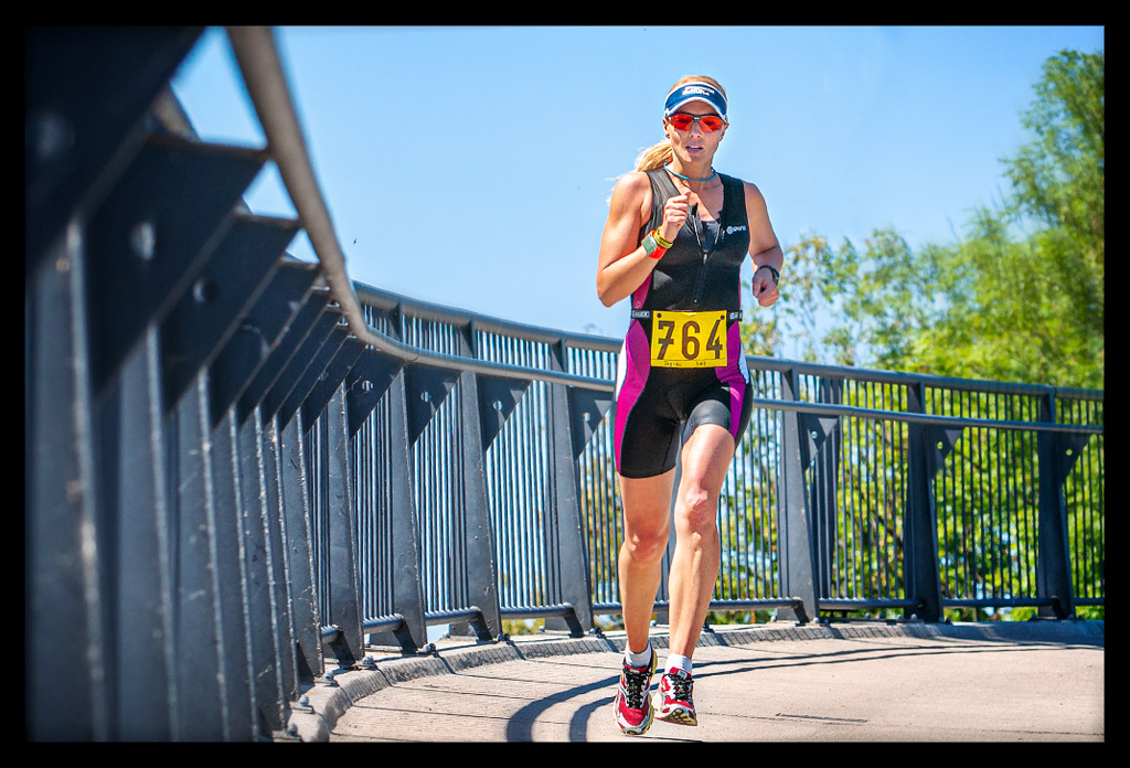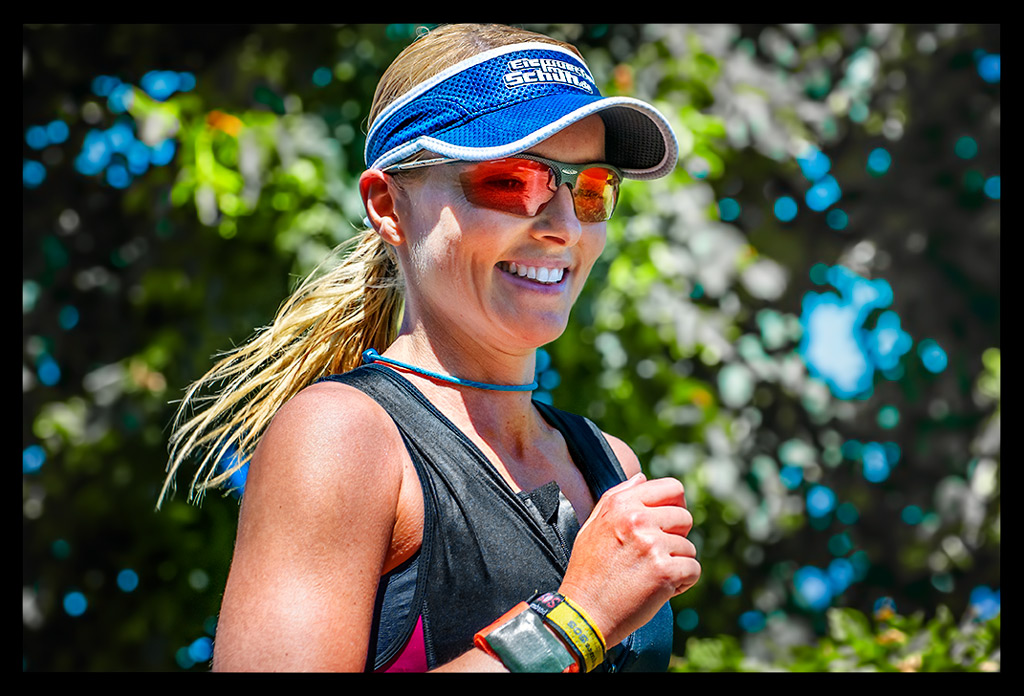 Was mich aber wirklich beschäftigt ist die erste Triathletin. Kann es wahr sein! Egal wie ich laufe, ich komme einfach nicht an sie heran. Wieso nicht? Wahrscheinlich reicht ein 5er Schnitt, der sich die Hügel hoch dramatisch verlangsamt, weil die Oberschenkel in der Sonne brennen wie Feuer, einfach nicht. Aber das ist meine Disziplin. Gibt es doch alles nicht. Ich sammle einen Mann nach dem anderen auf. Lauf unter die Top 20, kann aber die schnellste Frau einfach nicht erreichen. Allerdings habe ich keine Ahnung wie weit sie entfernt sein könnte.