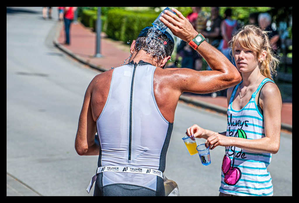 Nachdem das Schwimmen absolut problemlos und zügig erledigt war, durfte ich auf die 66km lange Radstrecke und mich auf die 16km Laufen freuen. Bei der immer mehr aufsteigenden Wärme war ich sehr froh, dass es sich nur um eine verkürzte Mitteldistanz handelte.