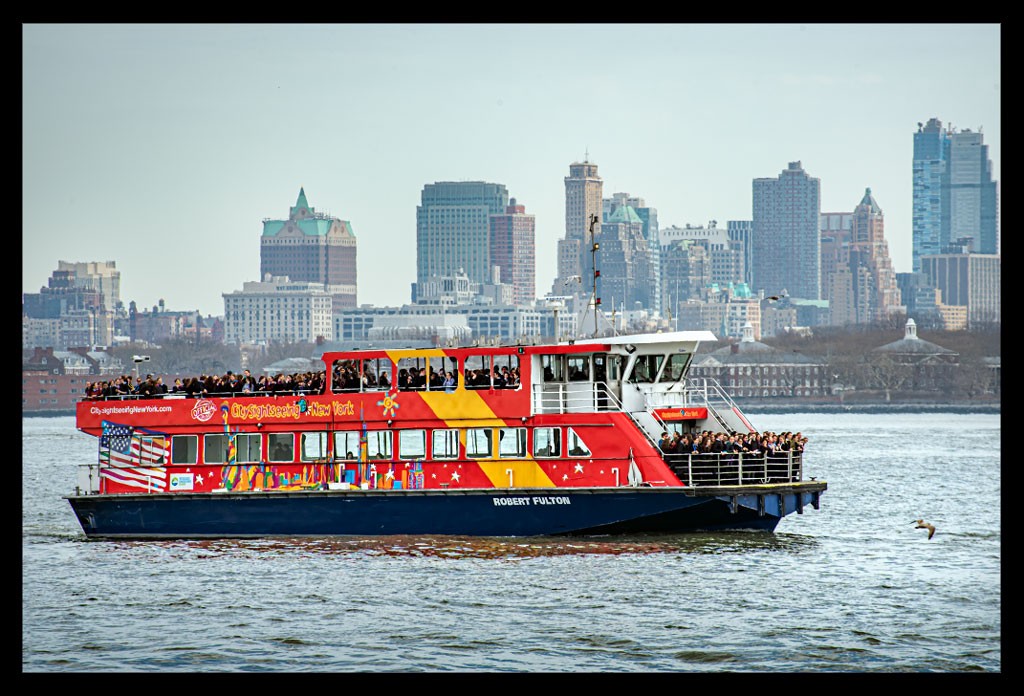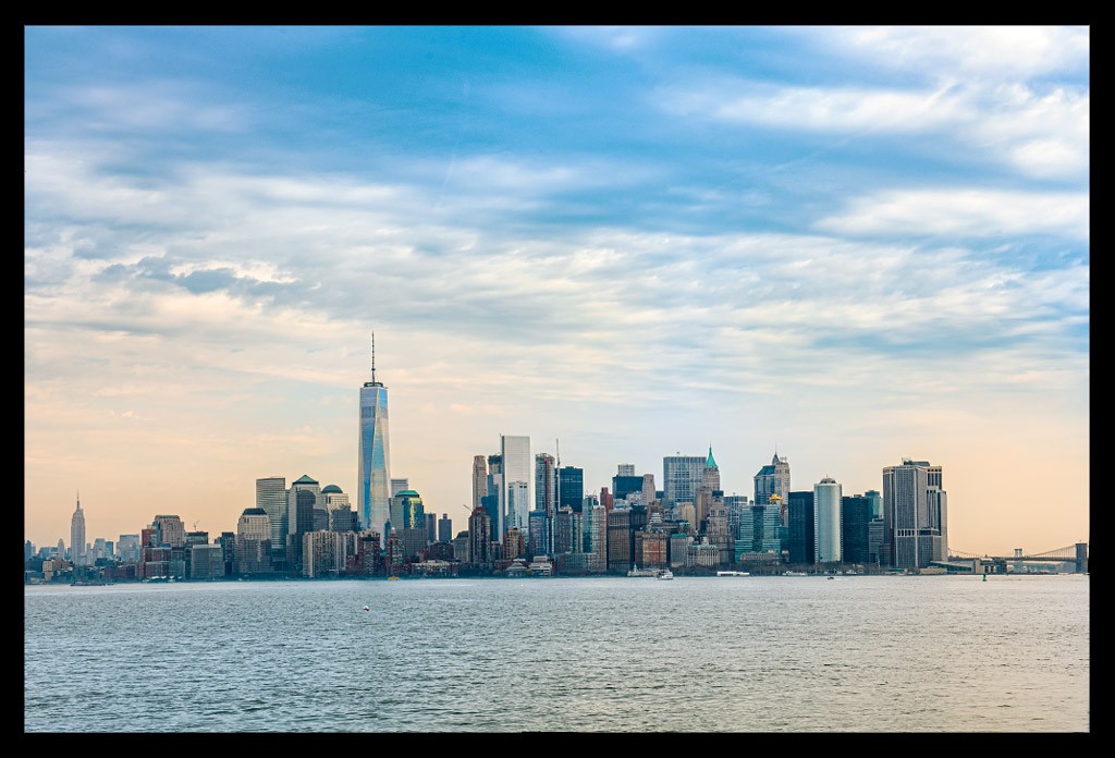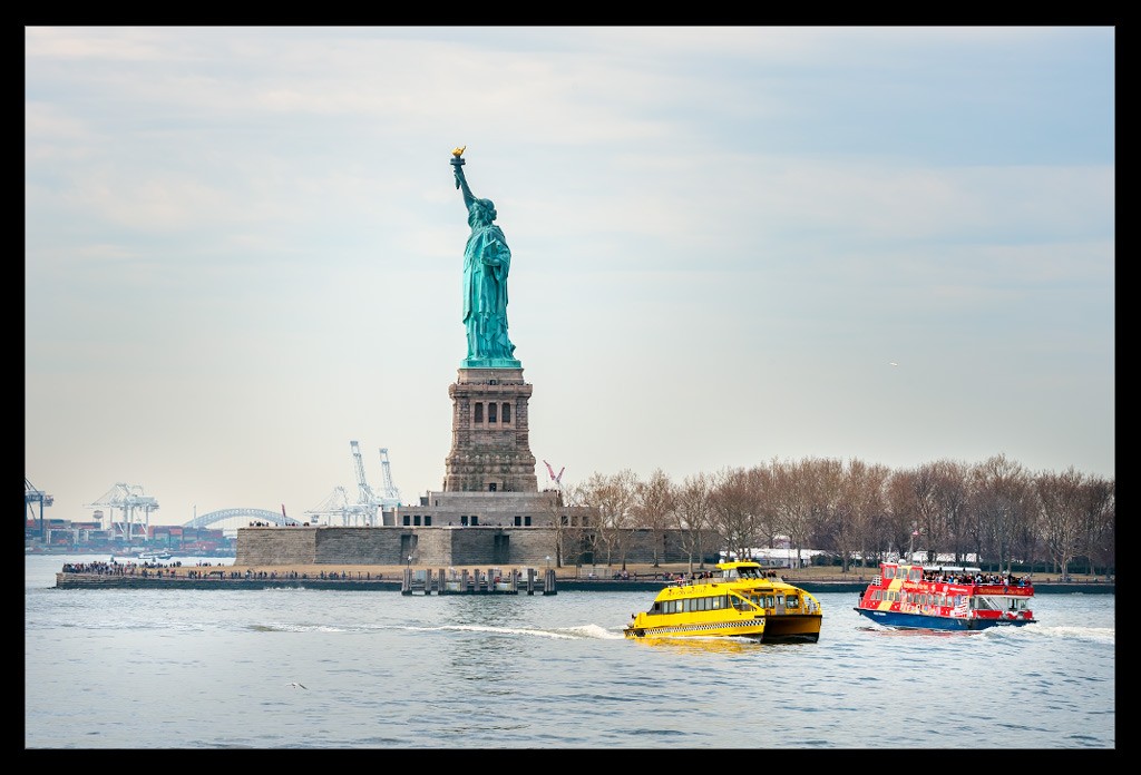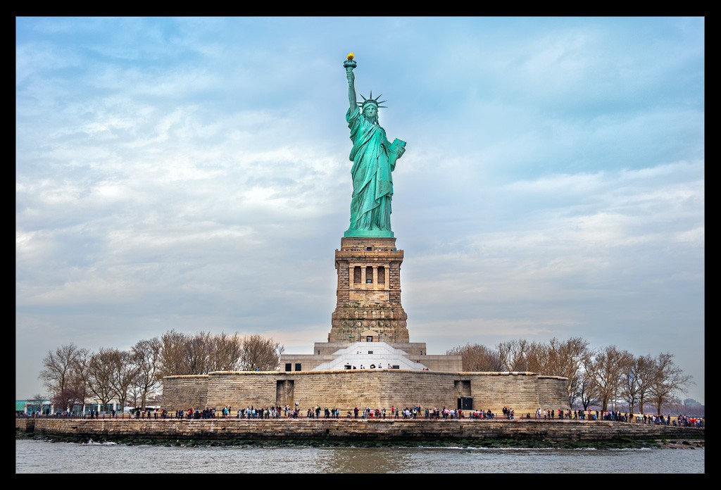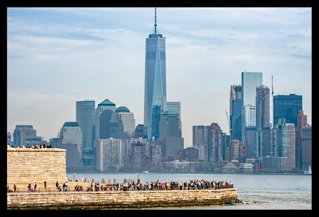 Von der Südspitze Manhattans legte die Fähre nach wenigen Minuten ab und machte sich auf den Weg durch den New Yorker Hafen. Die Überfahrt im strahlenden Sonnenschein dauerte einige Minuten. Die Skyline schrumpfte mit jedem Meter und die Dame mit ihrem grünlichen Gewand wurde größer und größer.