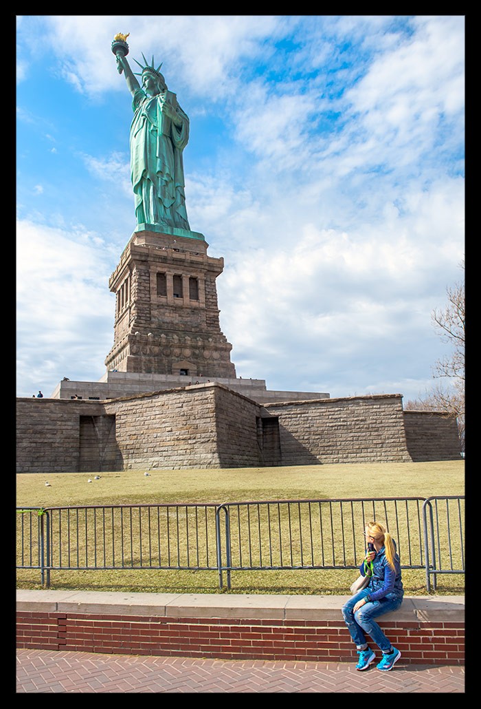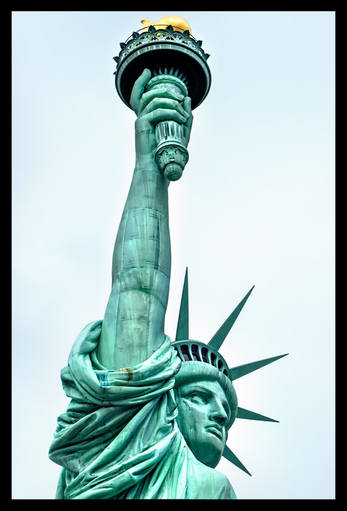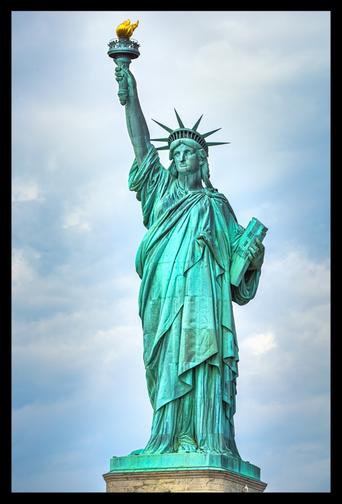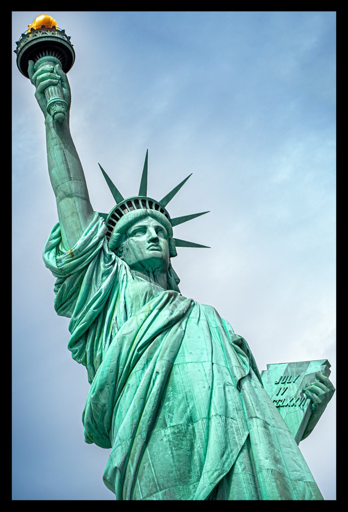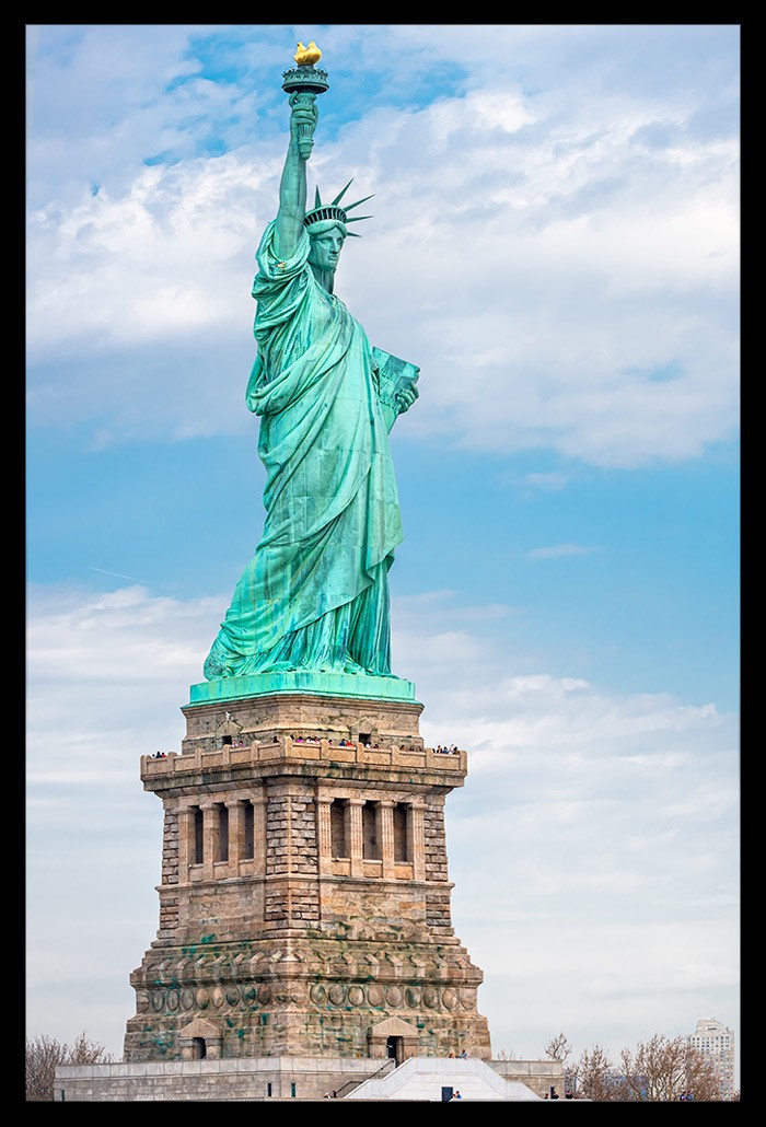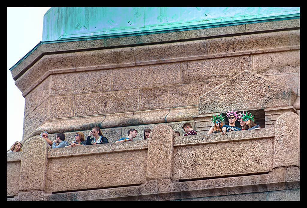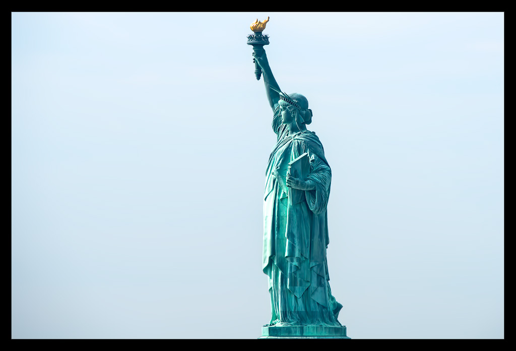 Ich nahm all die vielen unterschiedlichen Eindrücke auf und ließ mich von Informationen über Miss Liberty überhäufen und treiben. Einst war sie kupferfarben, wechselte dann aber innerhalb weniger Jahre ihre Farbe dank der grünlichen Patina, die sie ansetzte. Sie besteht nicht aus einem Stück sondern vielmehr aus fast unzähligen kleineren Kupferstücken, die geradezu hauchdünn im Vergleich zu ihrer Größe wirken und perfekt ineinander eingepasst wurden. Je mehr ich sie von vorn zu sehen bekam, desto faszinierter war ich.