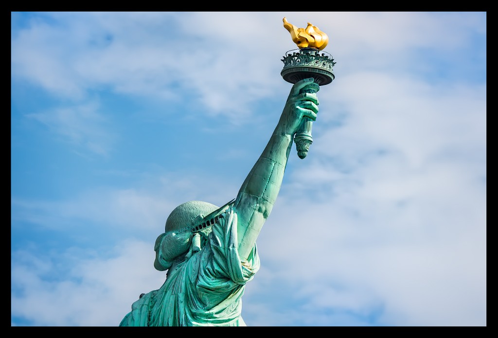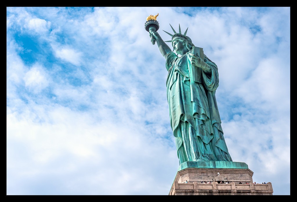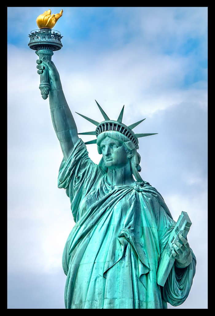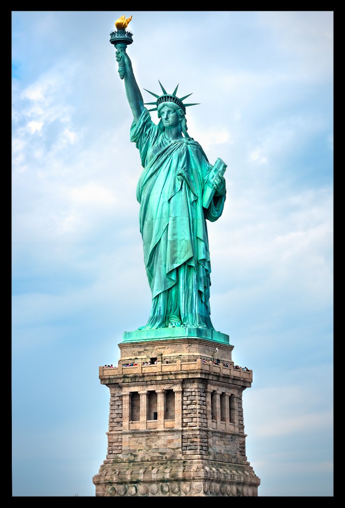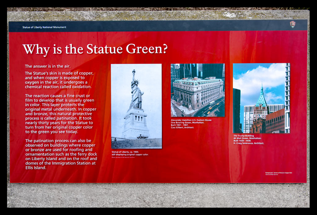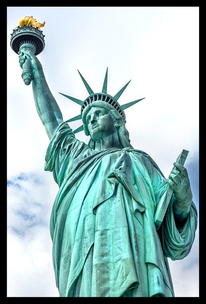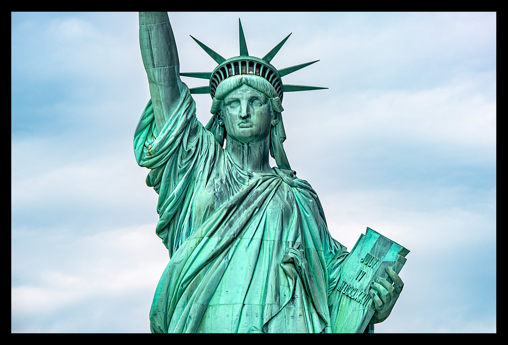Ich nahm all die vielen unterschiedlichen Eindrücke auf und ließ mich von Informationen über Miss Liberty überhäufen und treiben. Einst war sie kupferfarben, wechselte dann aber innerhalb weniger Jahre ihre Farbe dank der grünlichen Patina, die sie ansetzte. Sie besteht nicht aus einem Stück sondern vielmehr aus fast unzähligen kleineren Kupferstücken, die geradezu hauchdünn im Vergleich zu ihrer Größe wirken und perfekt ineinander eingepasst wurden. Je mehr ich sie von vorn zu sehen bekam, desto faszinierter war ich.
