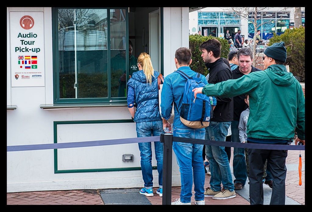Unser Weg kreuzte sich mit einigen Speed Booten, die ebenfalls durch den Hafen fuhren. Wir erhielten von der Küstenwache Begleitschutz, während ein Helikopter des NYPD die Statue umrundete und die Gäste scheinbar die Aussicht von oben genossen. Wir schipperten derweil halb um die Insel bis wir am Steg anlegten und von Bord gehen konnten. Das Besucherzentrum empfing jeden freundlich und ich schnappte mir direkt die Audio Tour.