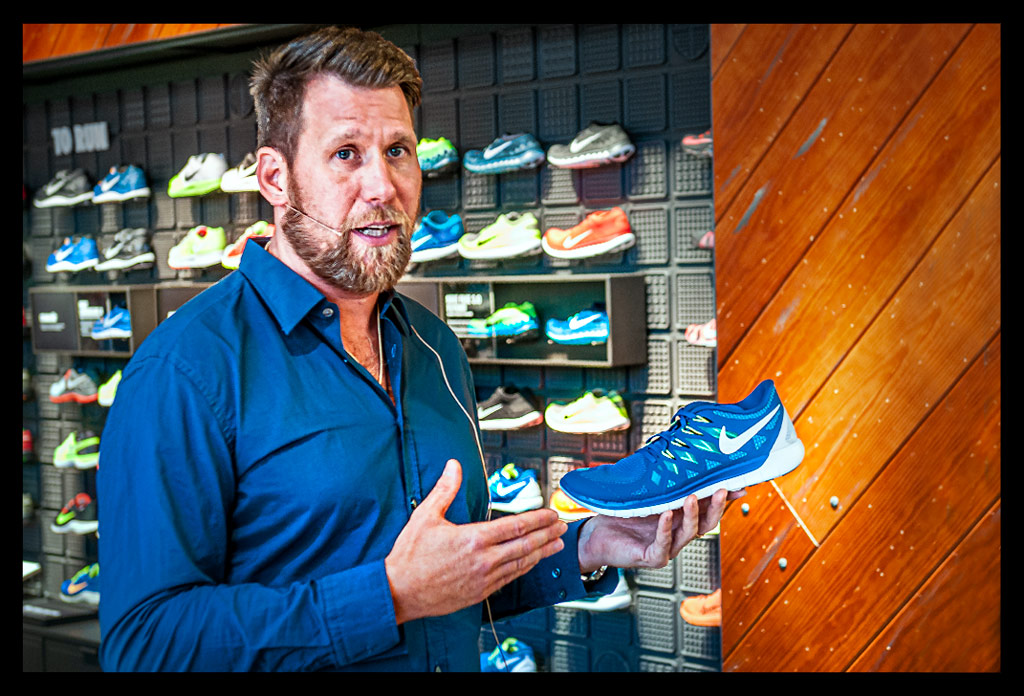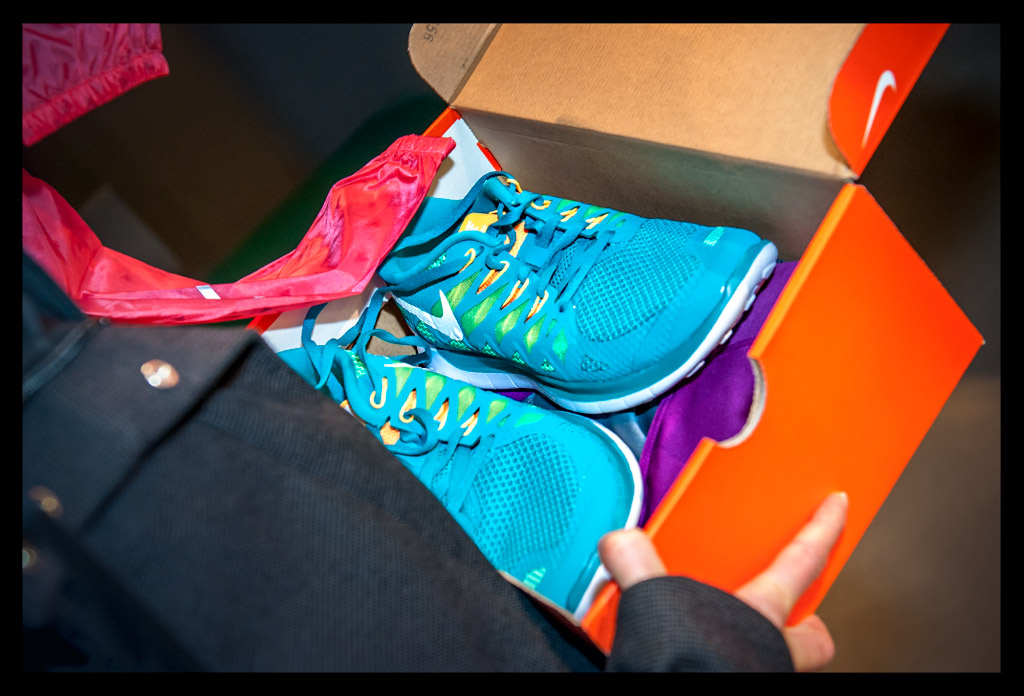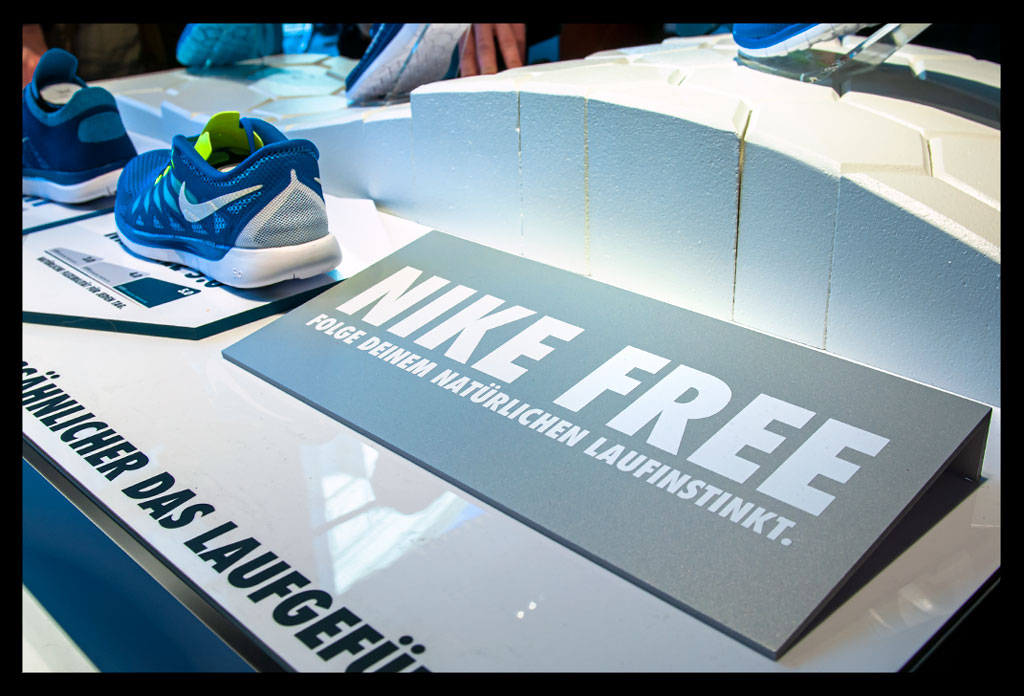 Den neuen Nike Free 5.0 durften wir an diesem Abend nach einer detaillierten Vorstellung durch einen Nike Produktmanager auch probelaufen. Diese überarbeitete Version fällt allerdings aus irgendeinem Grund im Vorfußbereich so weit aus, dass ich in meiner üblichen Größe kaum Halt darin finden konnte. Aber mit der bekannten freundlichen Hilfe des Nike Teams war der passende Schuh schnell gefunden.