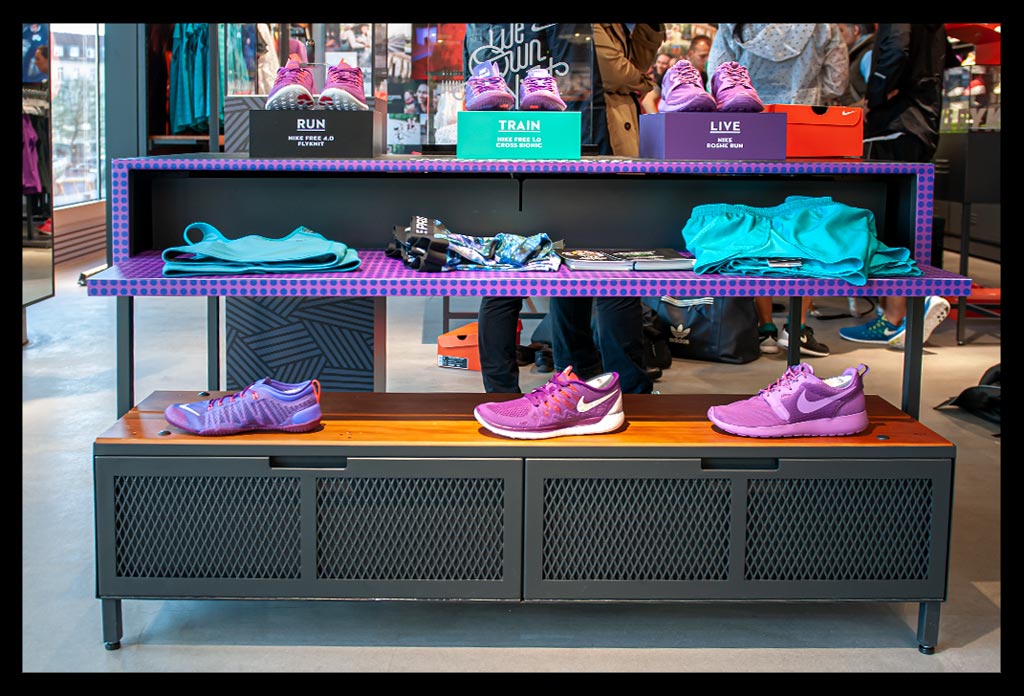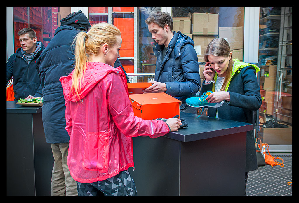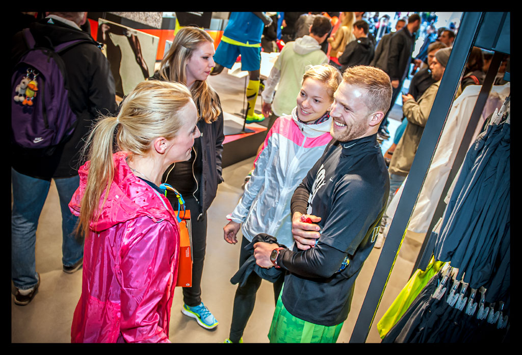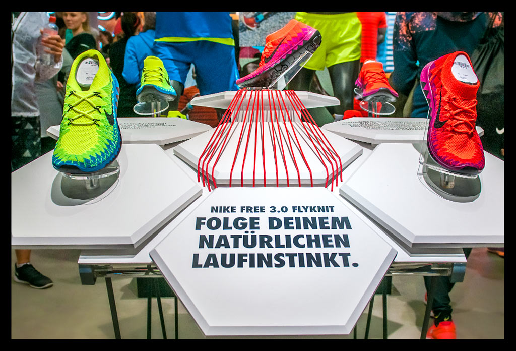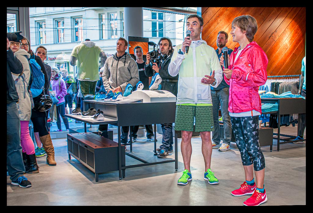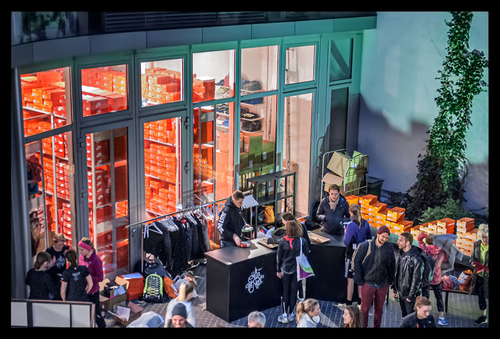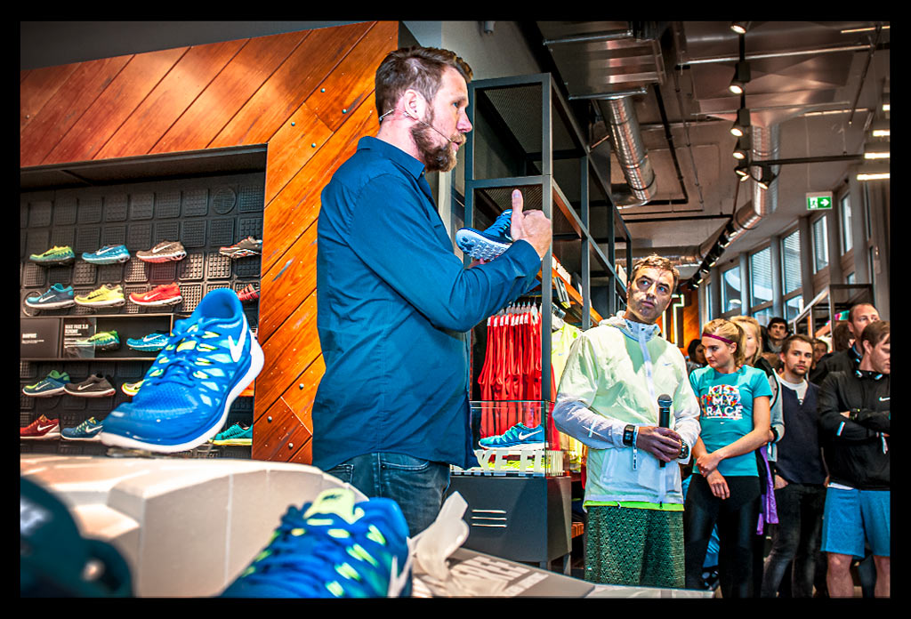 Besonders an Läufer wird hier gedacht und auf individuelle Beratung großen Wert gelegt. Von der Fußvermessung bis hin zum passenden Schuh und Outfit wird man hier rund herum betreut. Entsprechend groß war auch der Andrang am Eröffnungstag und vielen war die Neugierde gegenüber den aktuellen Nike Free Modellen anzusehen.