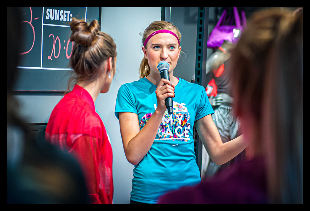 Nicht minder sympathisch und auf einem guten Weg, auch sehr erfolgreich zu werden, ist das Nachwuchstalent Caterina Granz. Die mehrfache deutsche Meisterin über 1.500m in der U20 freut sich schon auf die neue Teilnahme am ‚We own the night‘ Lauf Ende Mai. Kein Wunder – ging sie doch als strahlende Siegerin im vergangenen Jahr bei diesem Lauf hervor (hier geht es zu meinem Bericht und Zielbild mit Fotofinish). Caterina berichtete an diesem Abend von ihren Trainingsläufen durch die Stadt und wie sehr sie die Gegend und Natur genießt. Ich wünsche ihr viel Glück, dass sie auch in diesem Jahr die schnellsten Beine hat.